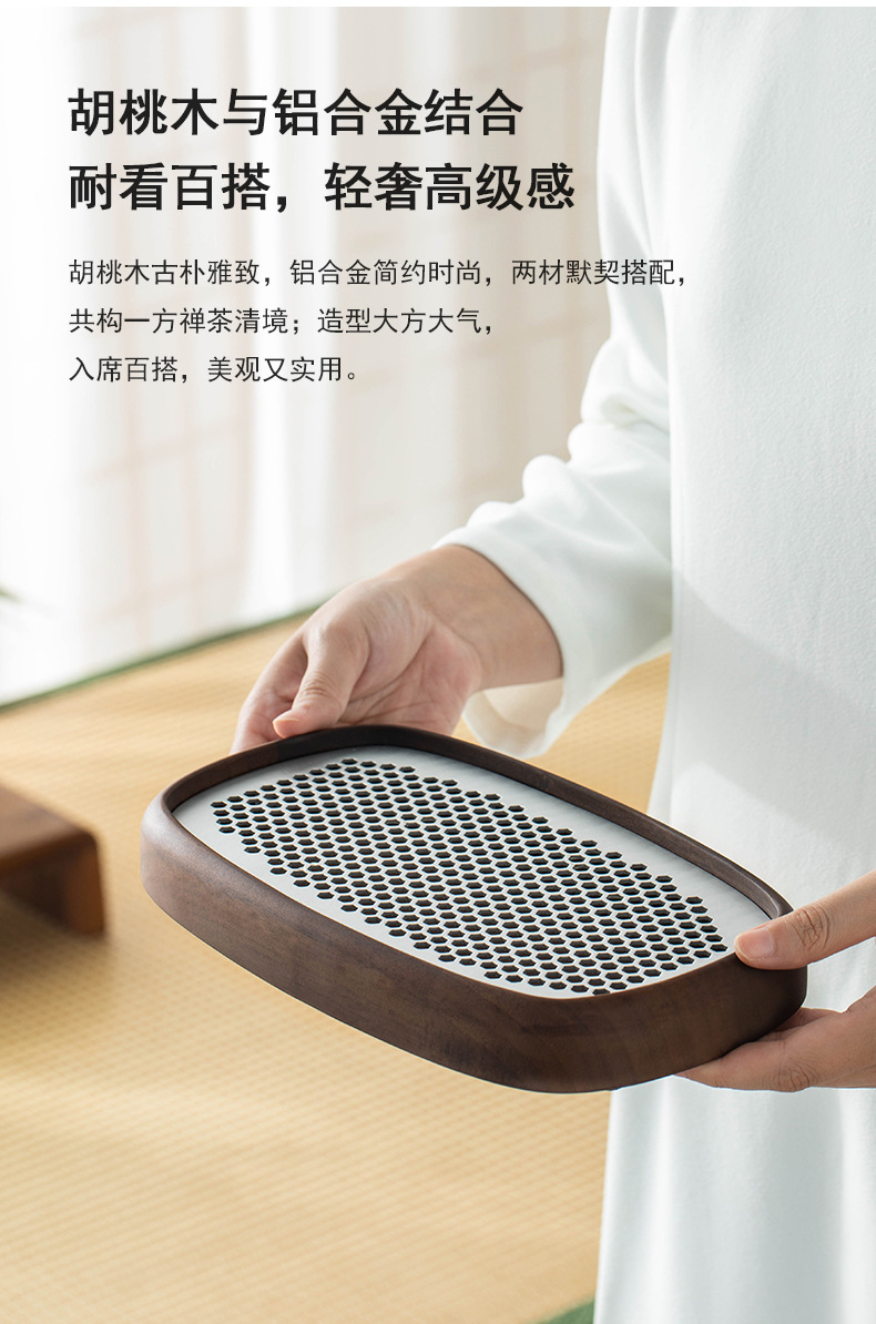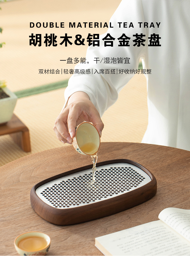 가정용 30년 된 호두나무 차 트레이 2025년 새로운 소형 건조 차 테이블 1인용 고급 물 저장 차 트레이