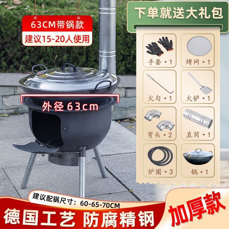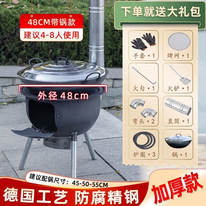 야외 장작 난로, 매우 두꺼운 장작 난로, 새로운 일체형 난로, 가정용 농촌 장작 난로, 이동식 철제 냄비 난로스토어 가기