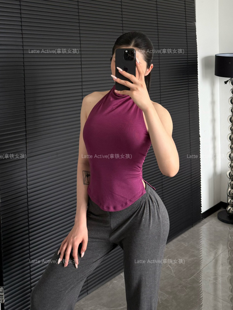 라떼걸 스윙넥 홀터넥 여름 요가탑 고정형 가슴 패드 아우터 고강도 트레이닝 피트니스웨어스토어 가기