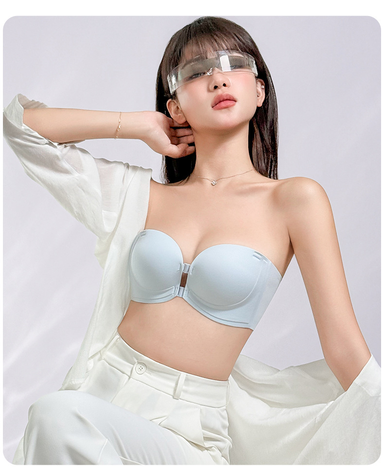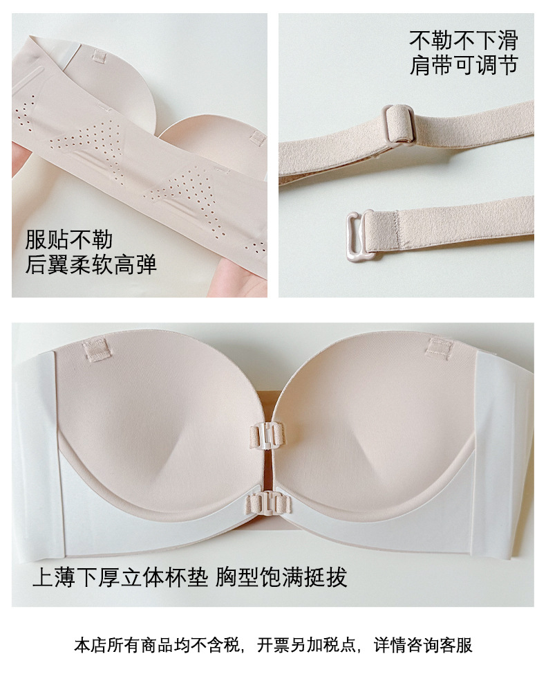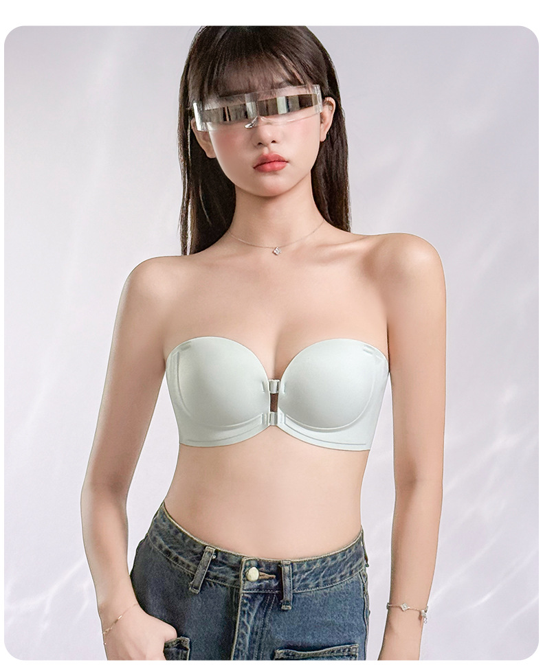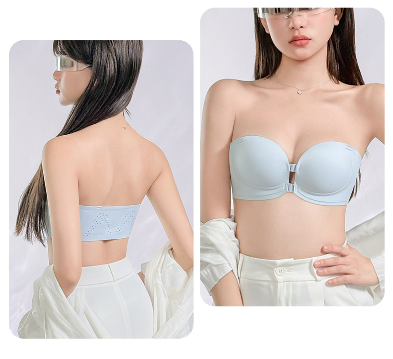 정품 X면 앞후크 끈없는 여성용 속옷, 보이지 않는 무봉제 미끄럼 방지 아름다운 등라인, 작은 가슴을 모아 더 크게 보이게 하는 브라, 탑리스 브라스토어 가기