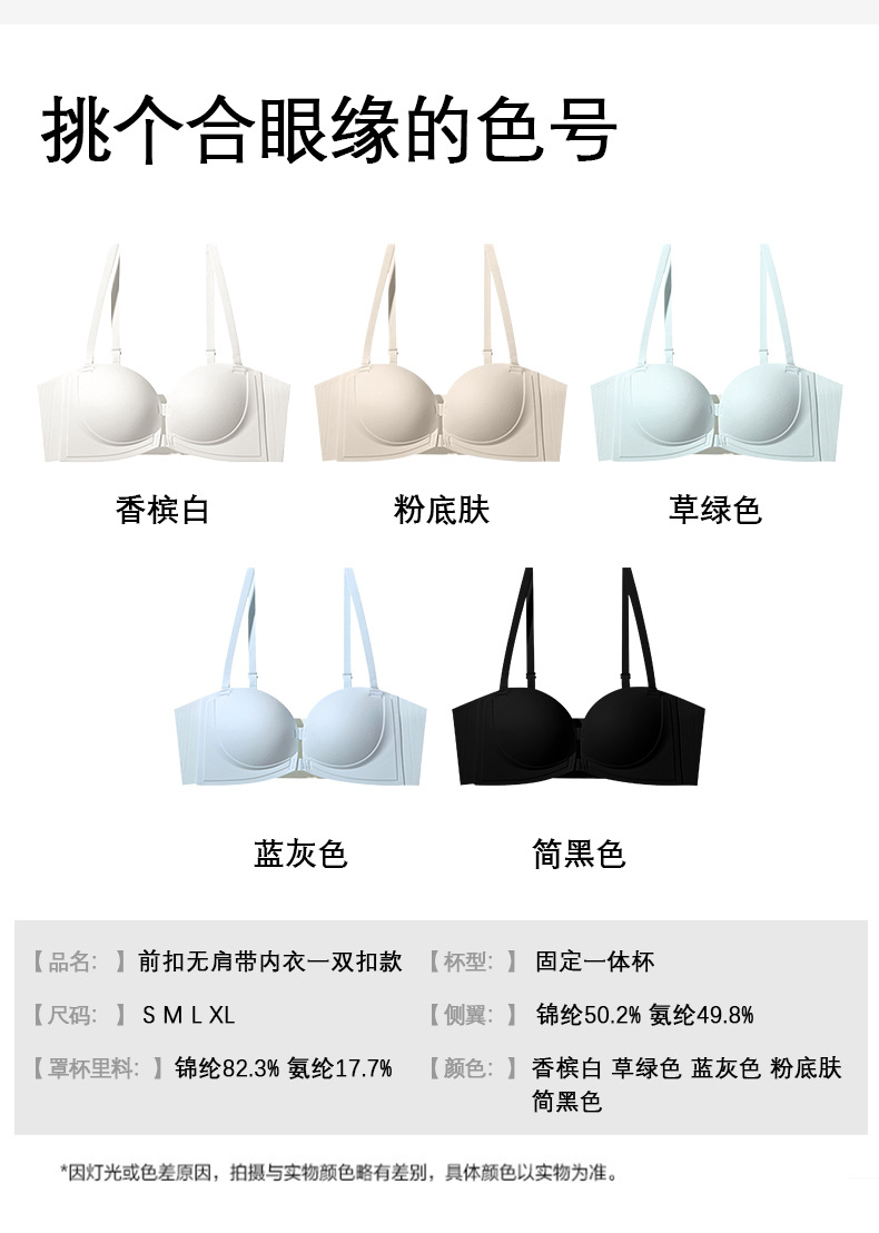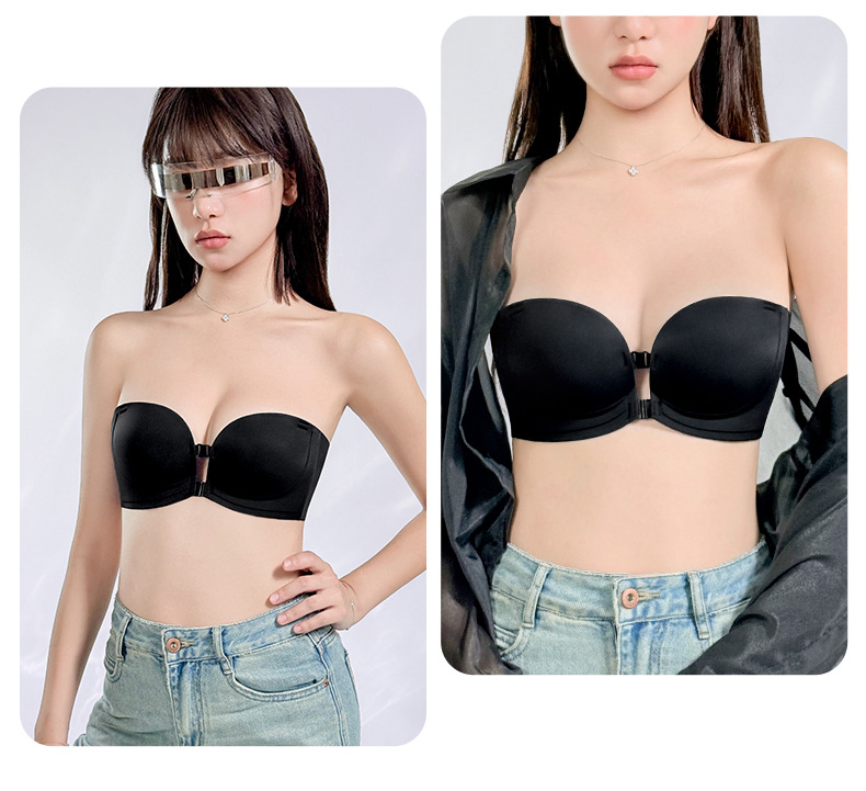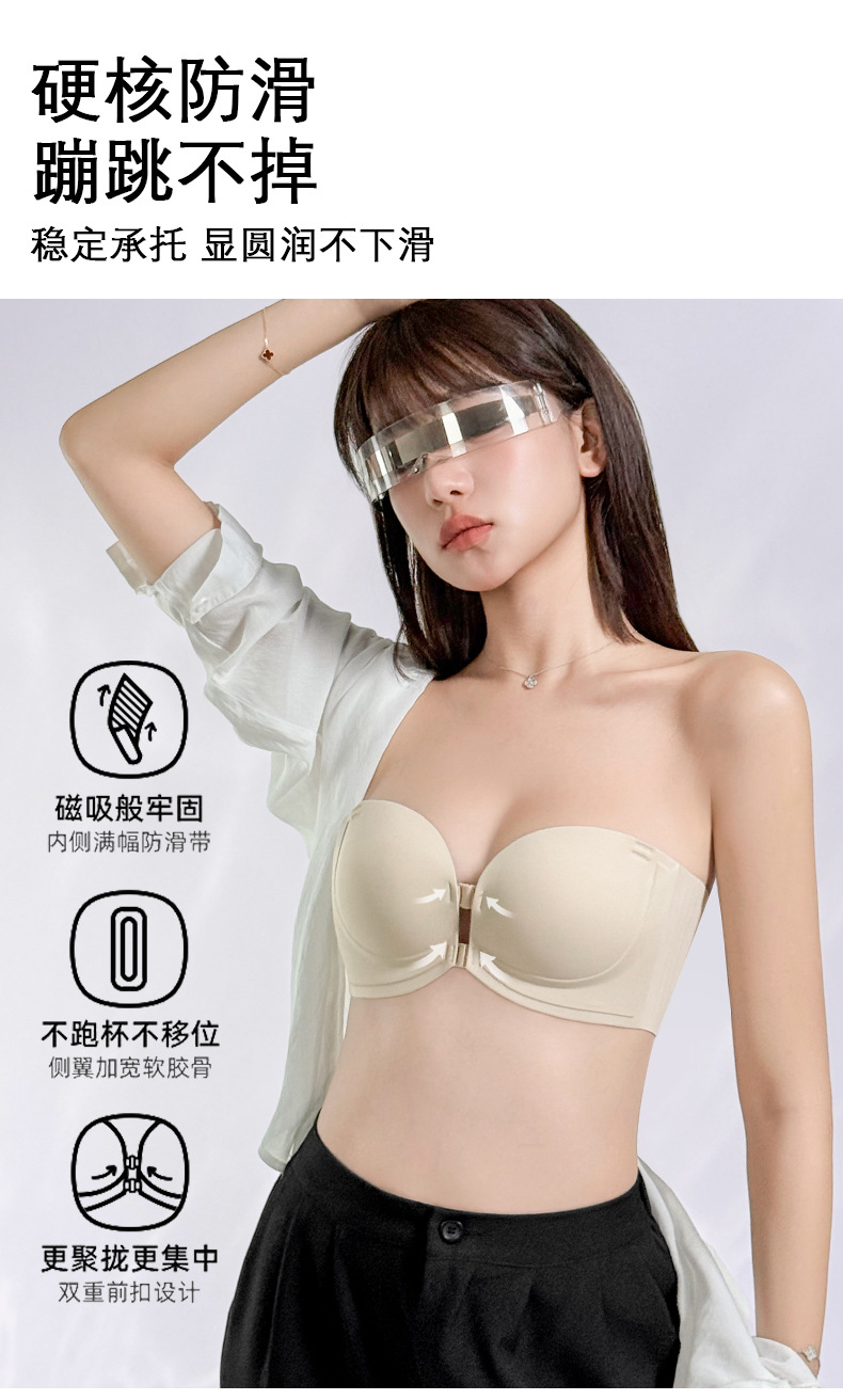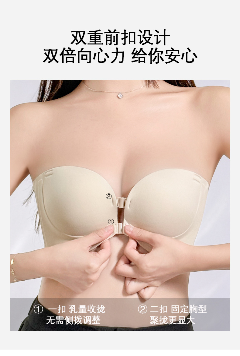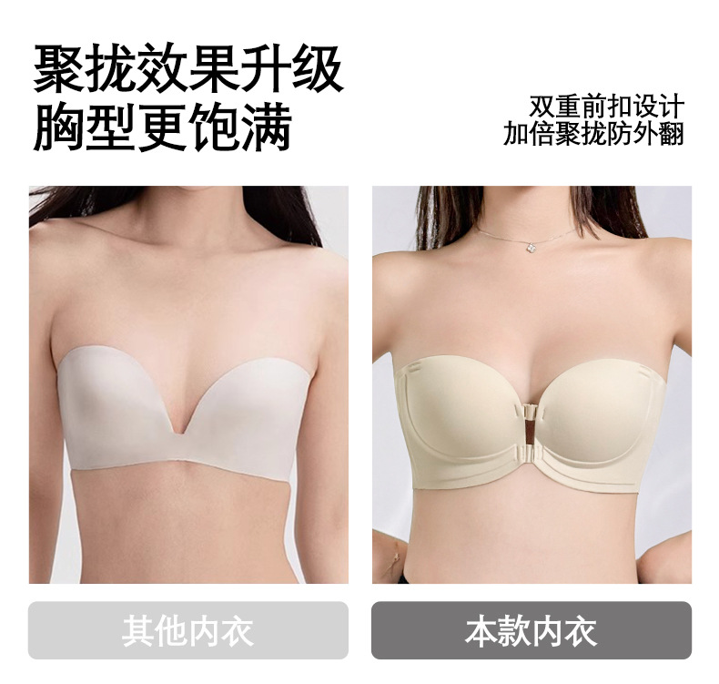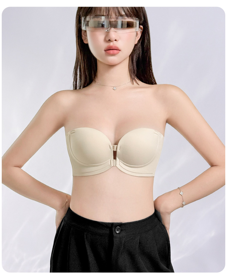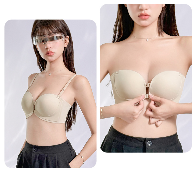 정품 X면 앞후크 끈없는 여성용 속옷, 보이지 않는 무봉제 미끄럼 방지 아름다운 등라인, 작은 가슴을 모아 더 크게 보이게 하는 브라, 탑리스 브라