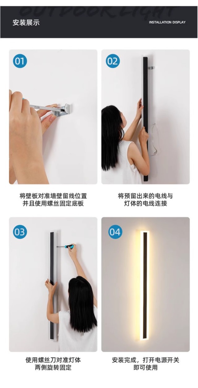 야외 미니멀리스트 벽 램프 방수 야외 안뜰 통로 문 슈퍼 밝은 LED 스트립 램프 정원 발코니 현대 램프스토어 가기