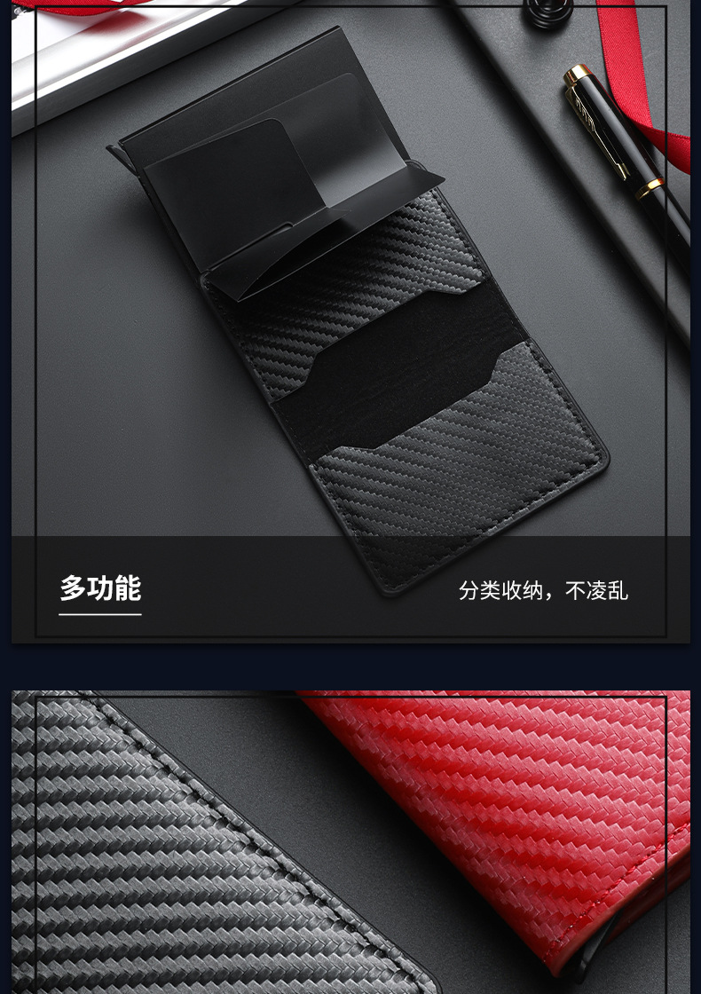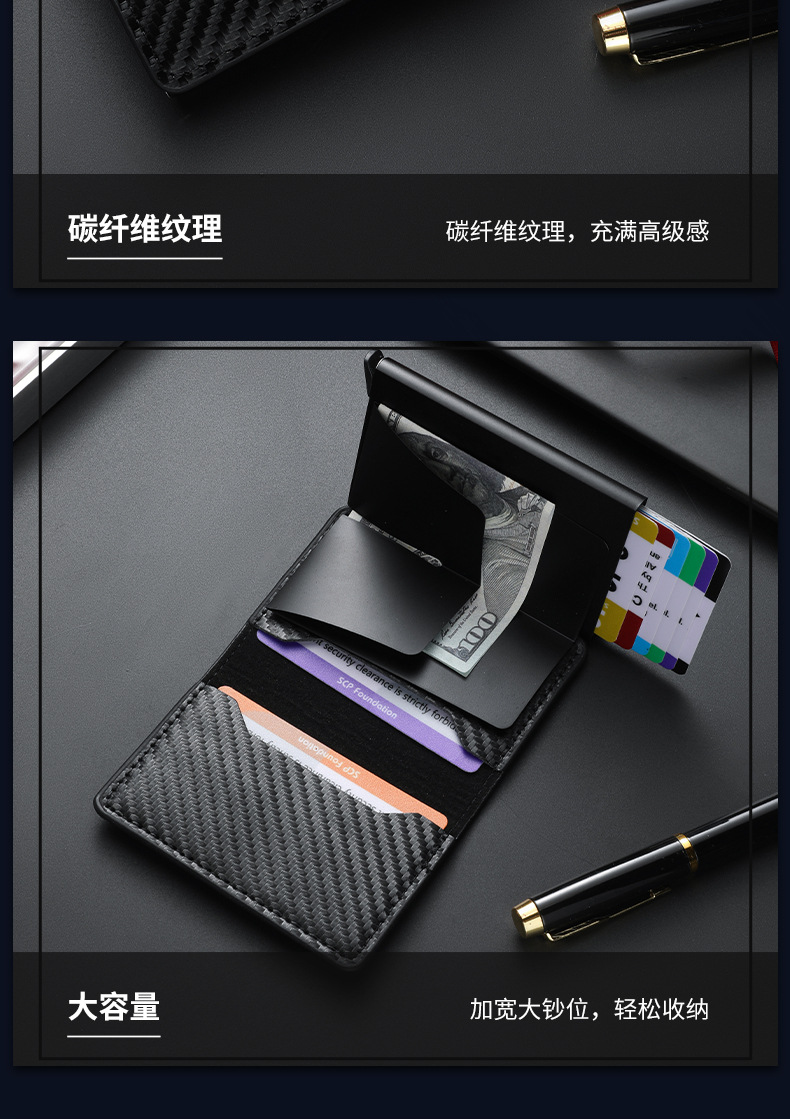 남성용 도난 방지 초박형 탄소 섬유 RFID 자동 카드 발사 알루미늄 합금 카드 홀더 은행 카드 지갑의 국경 간 특별 공급스토어 가기