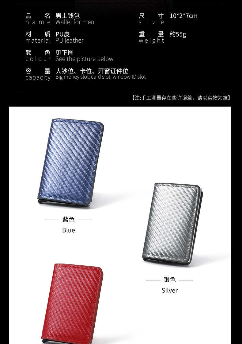 남성용 도난 방지 초박형 탄소 섬유 RFID 자동 카드 발사 알루미늄 합금 카드 홀더 은행 카드 지갑의 국경 간 특별 공급