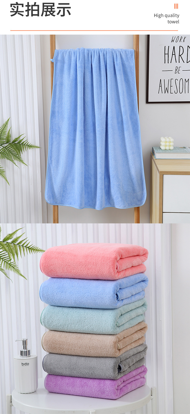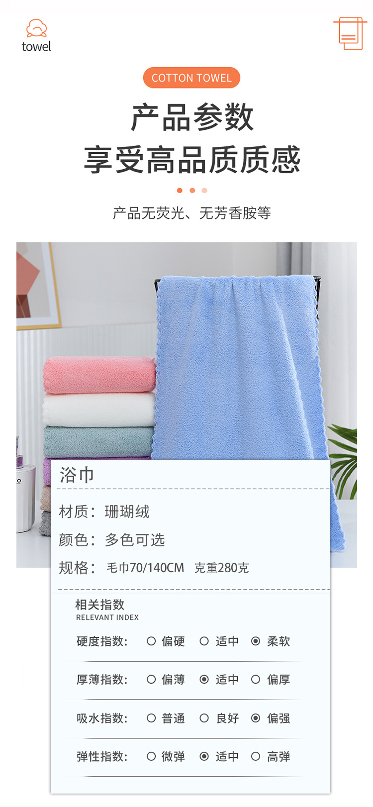 산호 벨벳 목욕 타월, 가정용 부드럽고 길고 흡수성이 뛰어나며 보푸라기가 없는 남성용 및 여성용 속건성 목욕 타월, 바디 타월, 해변 타월, 대외 무역