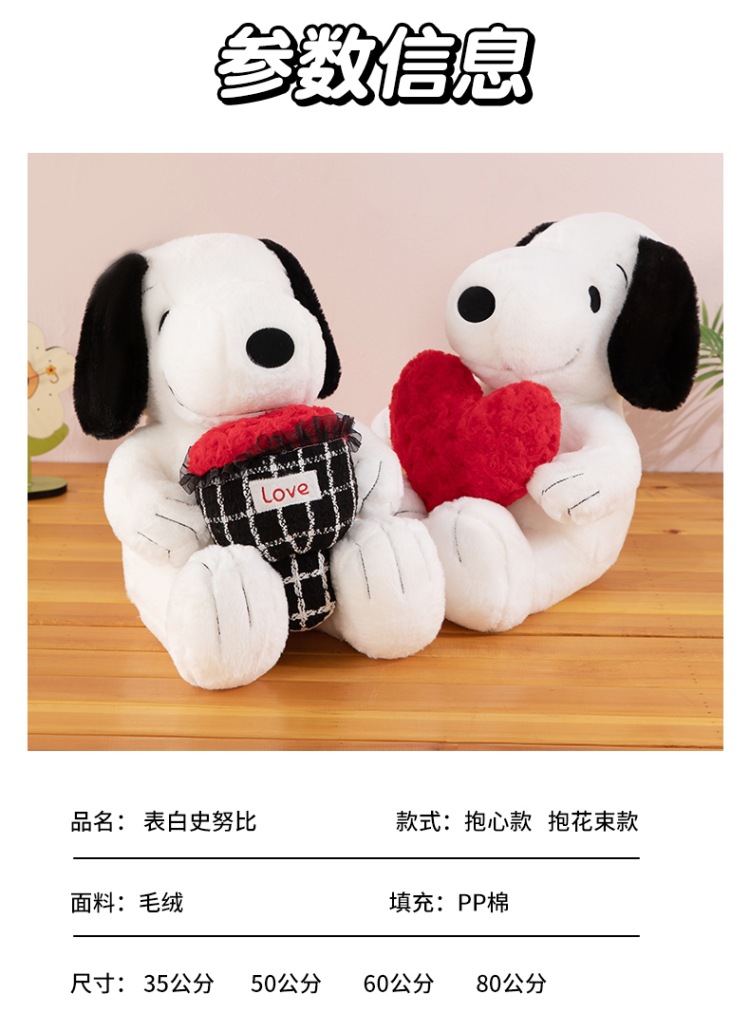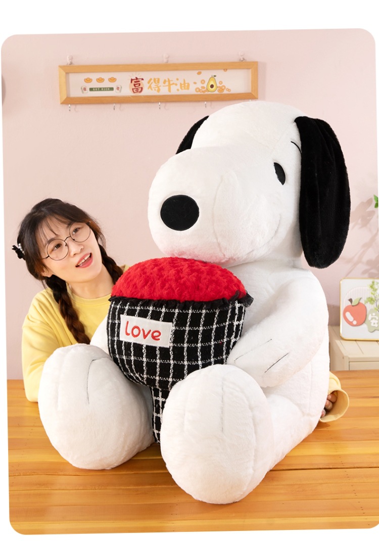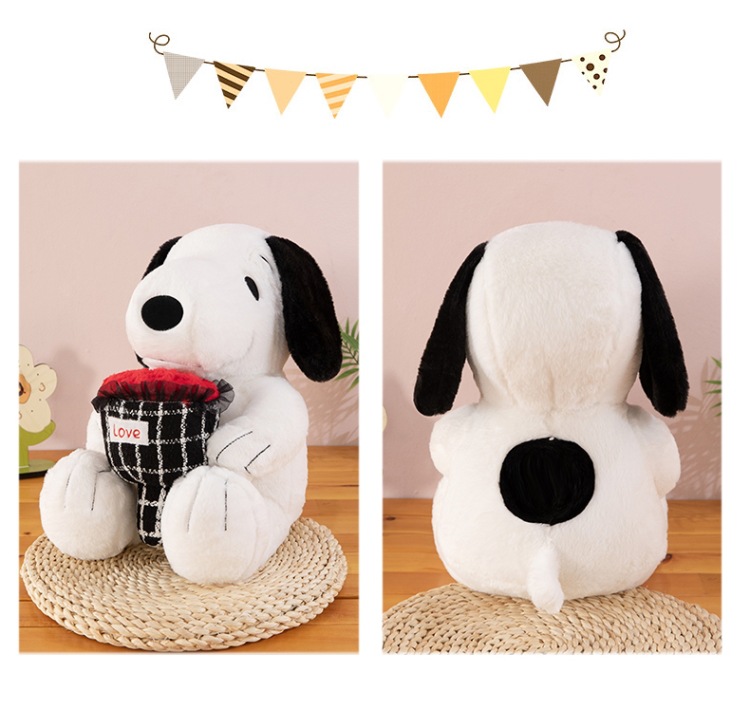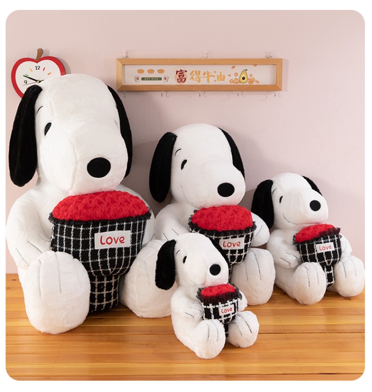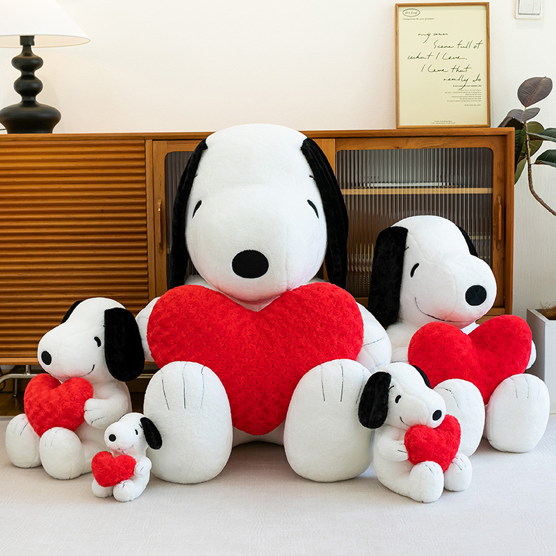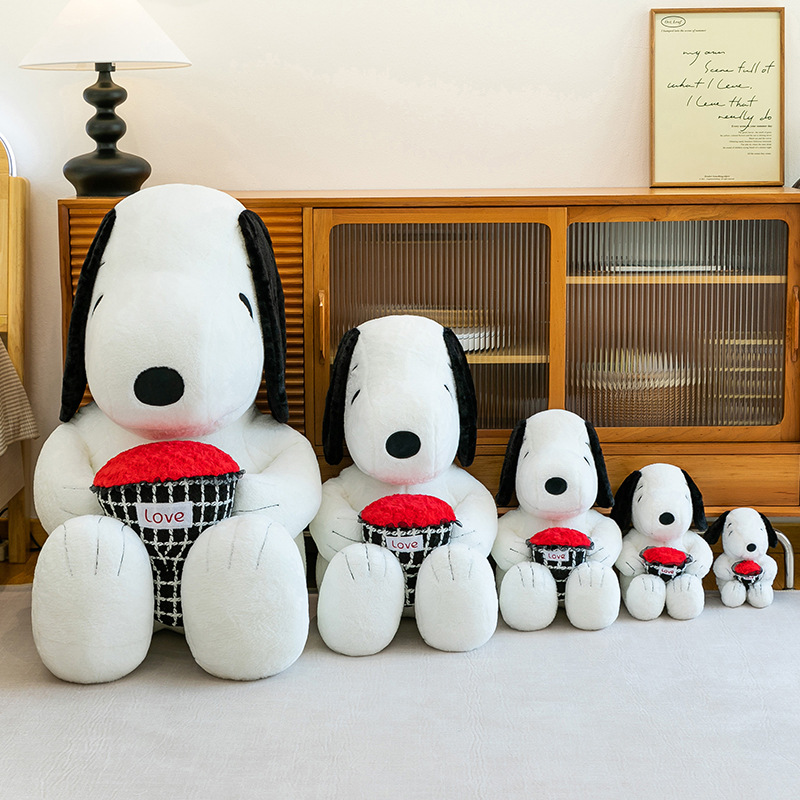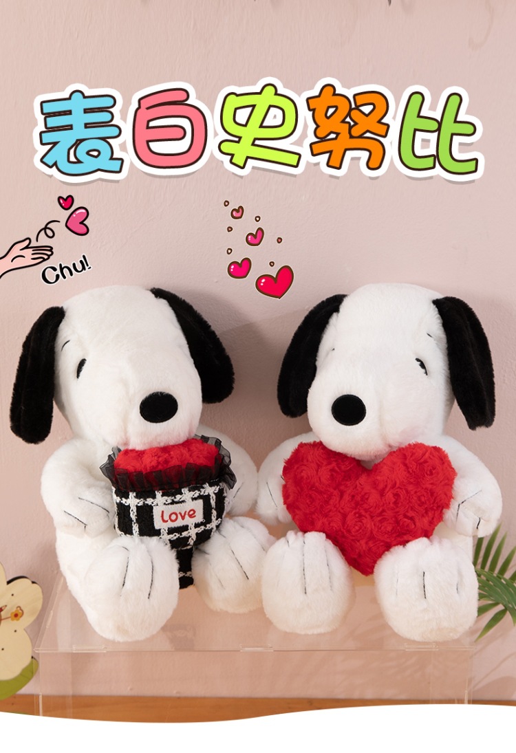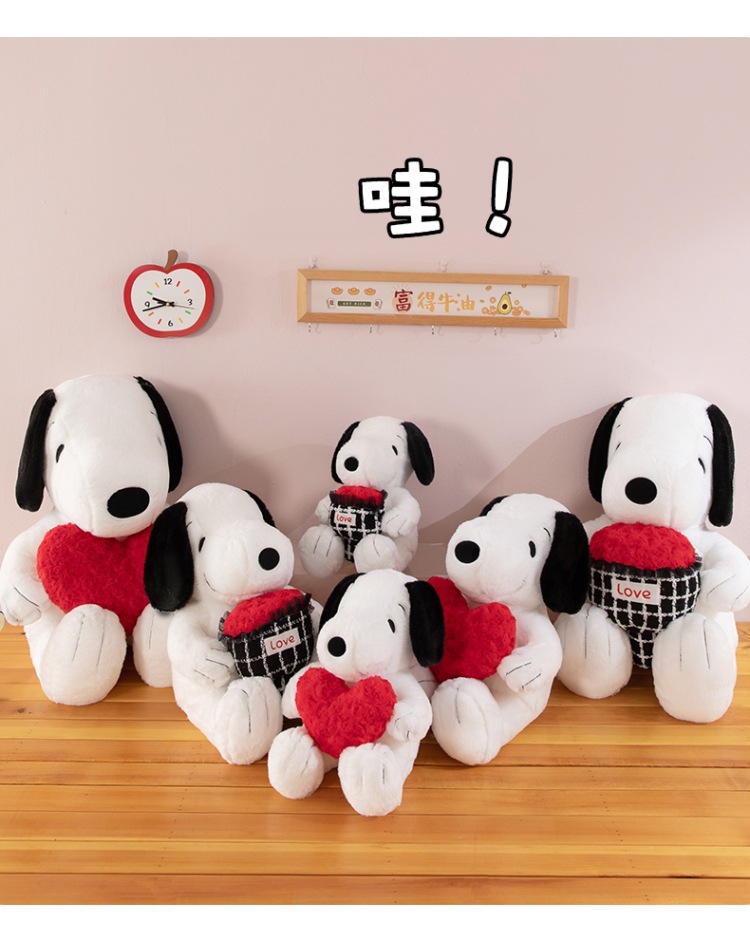 국경 간 스누피 개 인형, 하트를 가진 작은 흰색 개 플러시 장난감 선물 도매 창의적인 인형 캐치 기계 교환