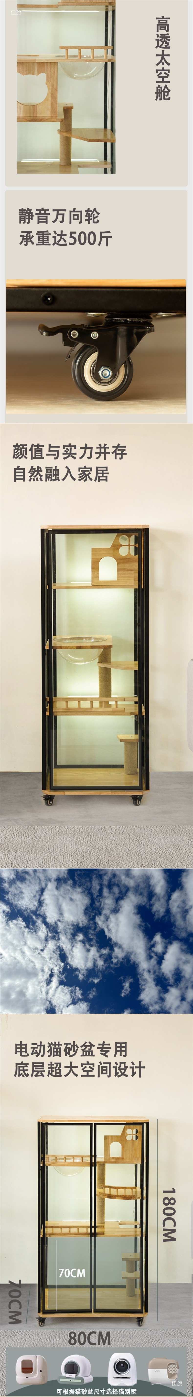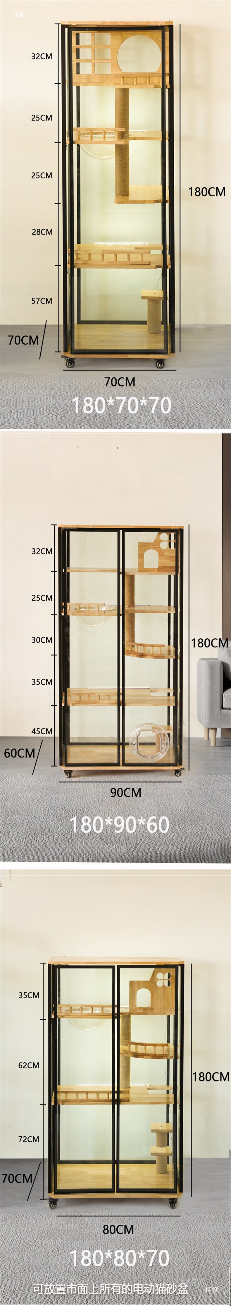 • 180*70*70은 작은 전기 고양이 배변 상자를 수용할 수 있습니다(설치 포함).