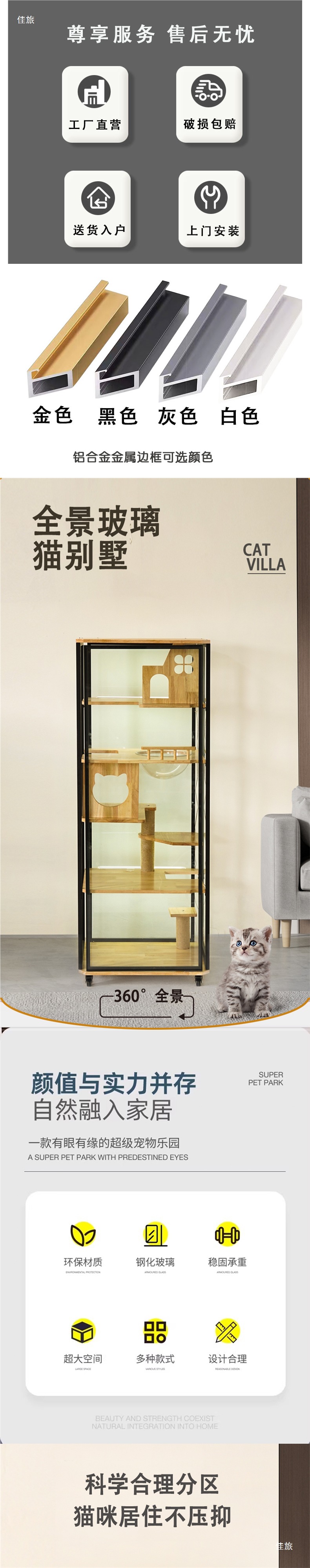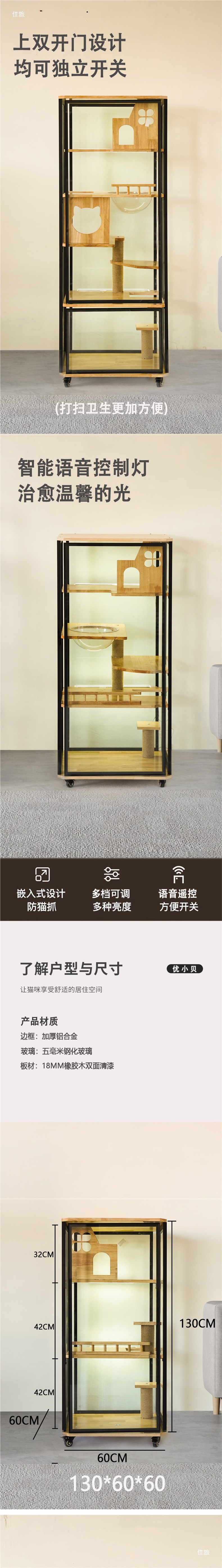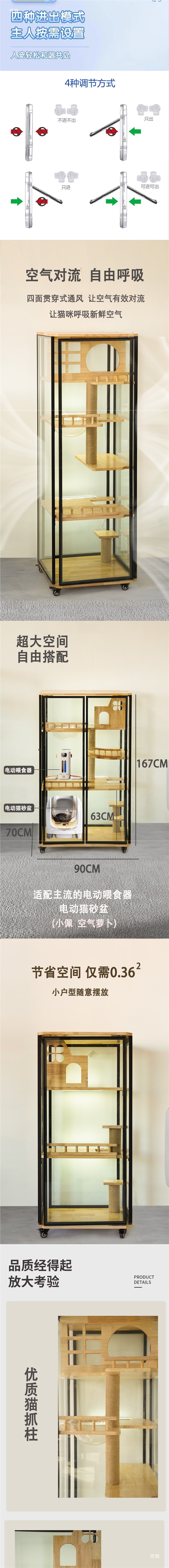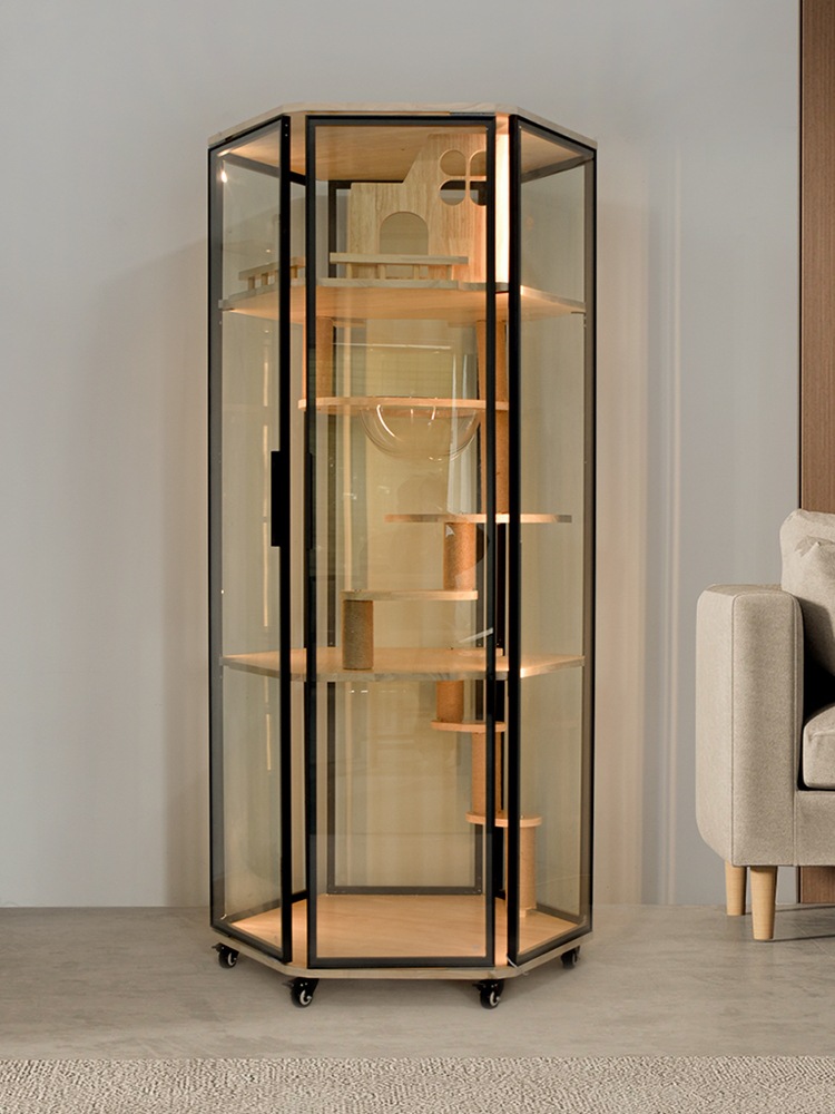 고양이 빌라는 공간을 차지하지 않습니다. 고양이 케이지 대형 가정용 고양이 캐비닛 파노라마 유리 고양이 케이지 고양이 쓰레기통 통합 고양이 집스토어 가기