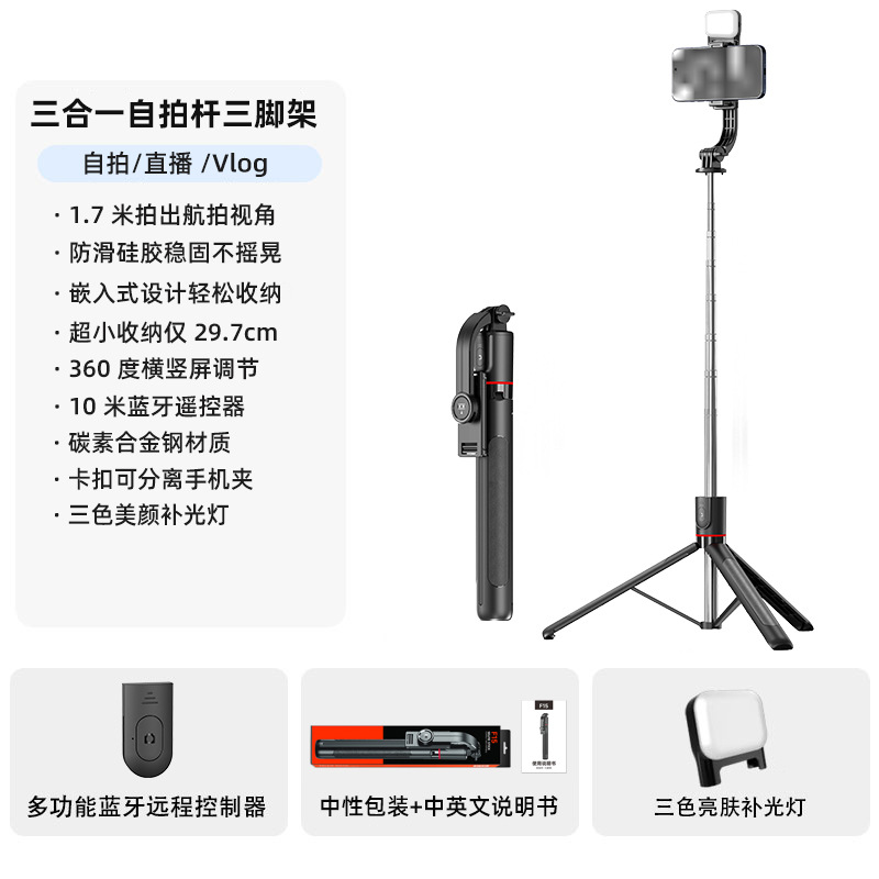 • 【F15s】뷰티 램프 + 삼각대 + 블루투스 리모컨 + 텔레스코픽 폴