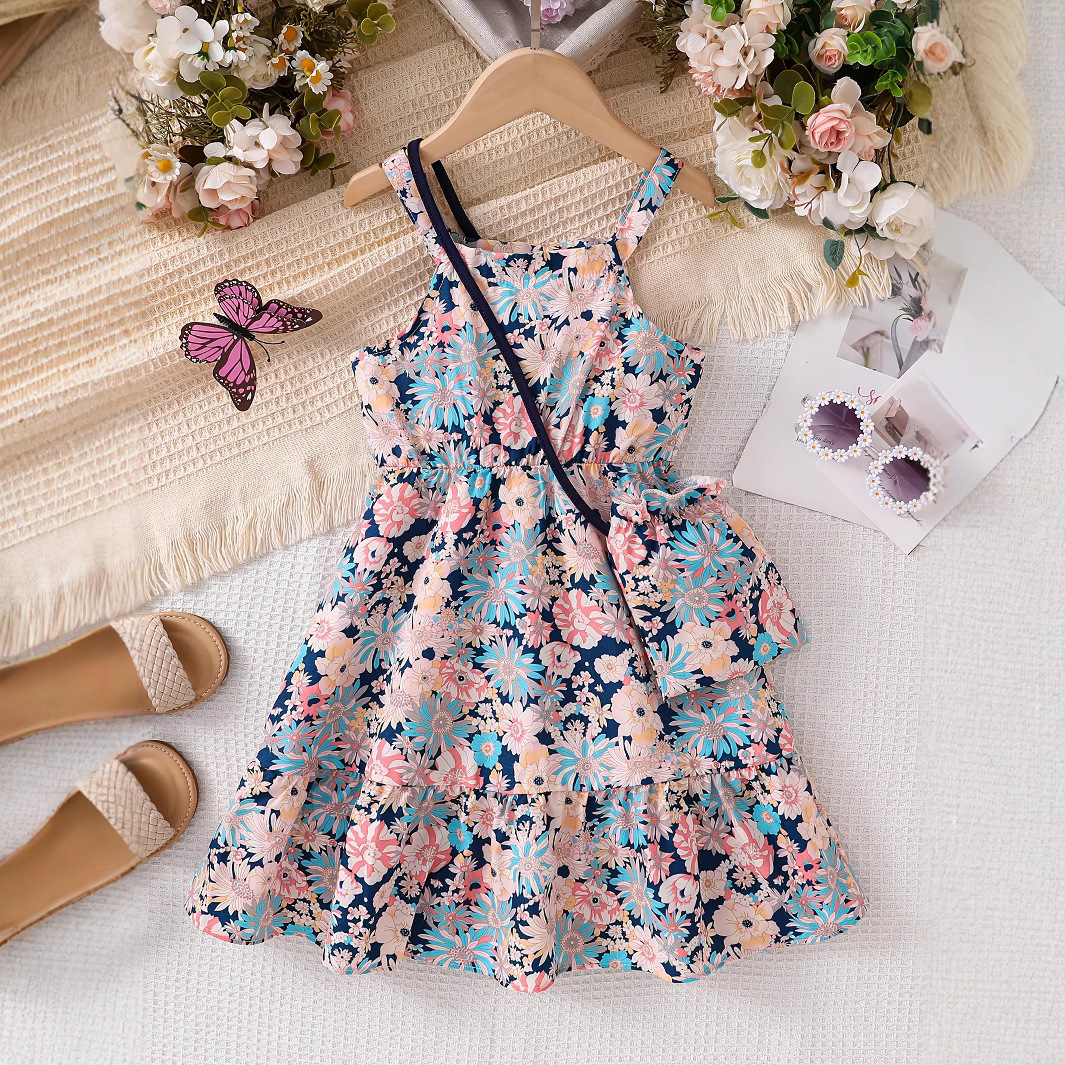 소녀& # 39;s 비치 드레스 여름 소녀 드레스 민소매 스커트 꽃무늬 달콤한 한국 스커트