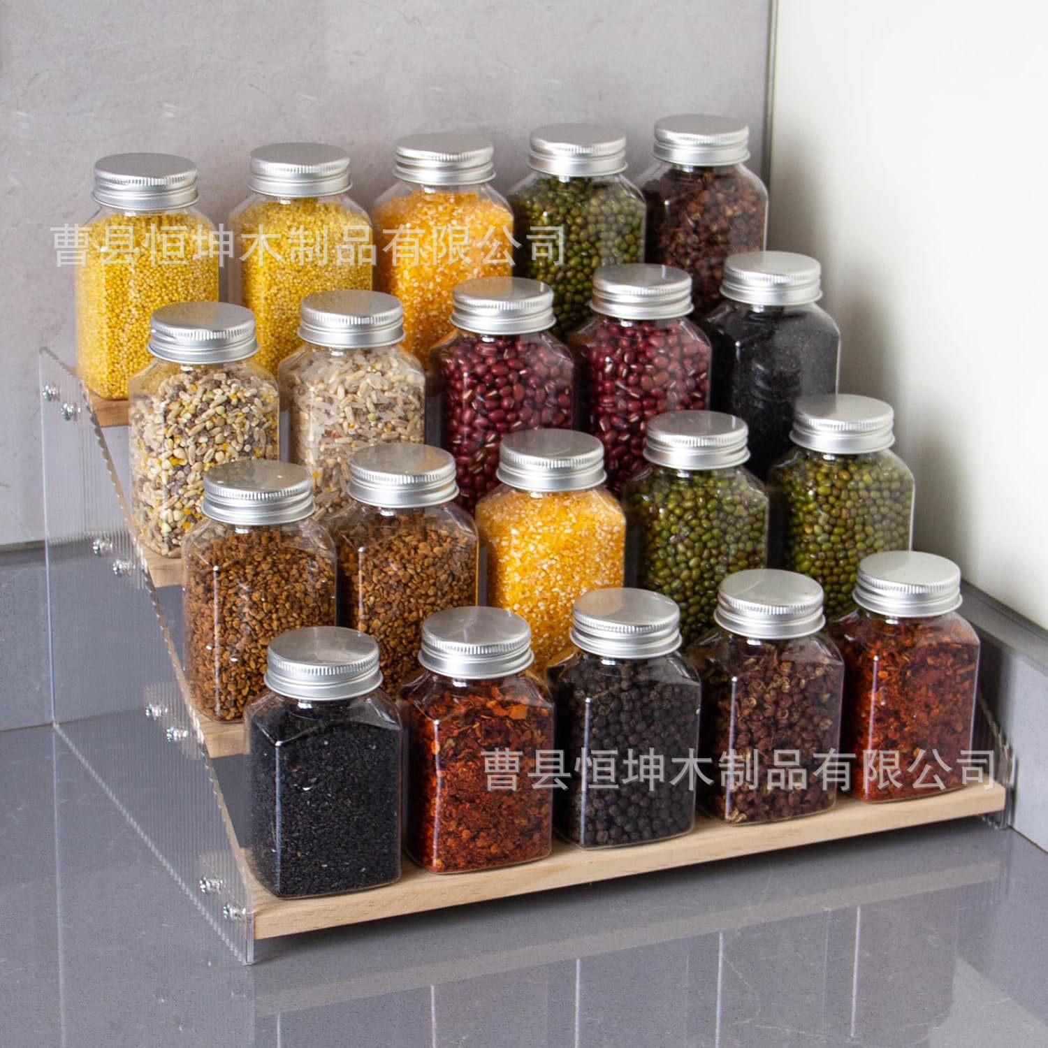 가벼운 고급 목조 주방 조미료 보관 랙 데스크탑 화장품 보관 랙 손으로 만든 인형 블라인드 박스 보관 랙