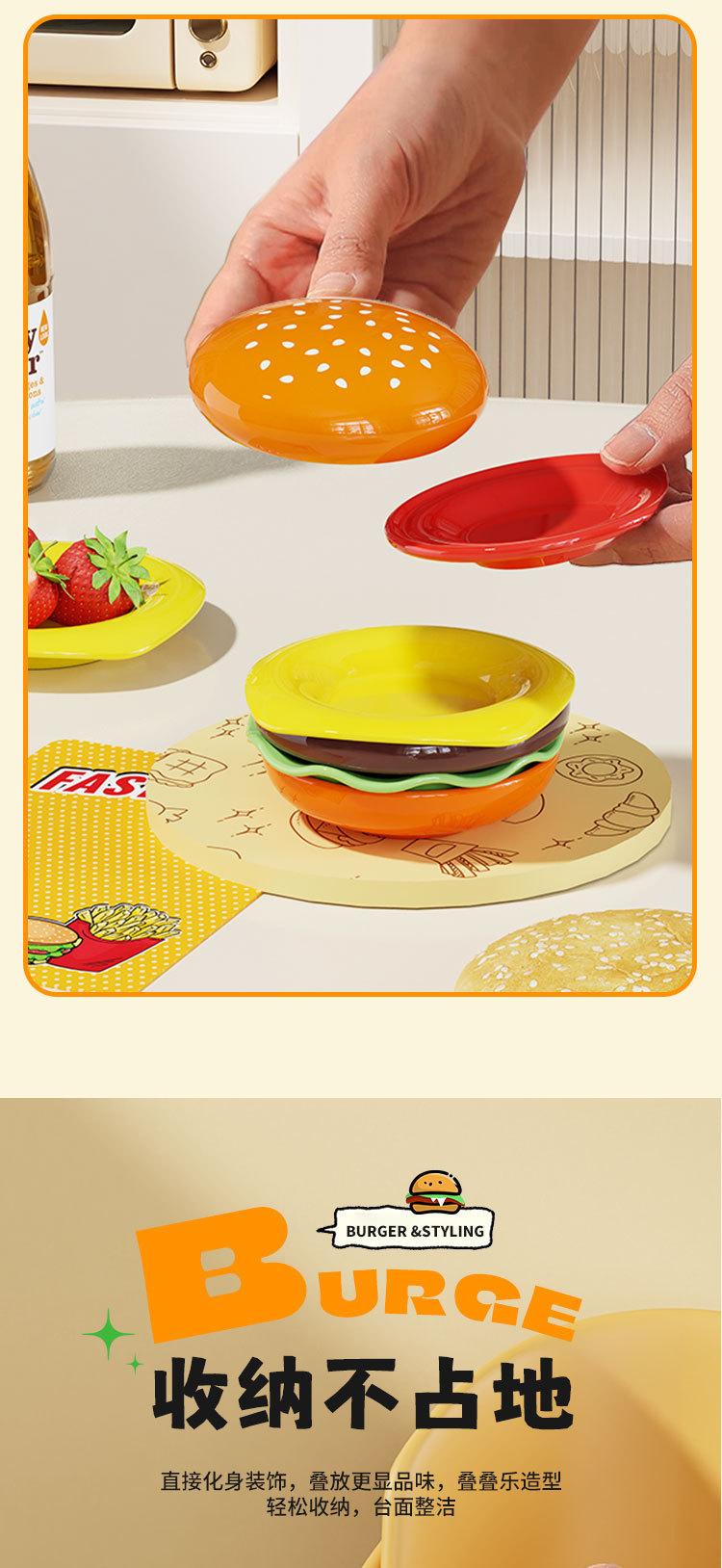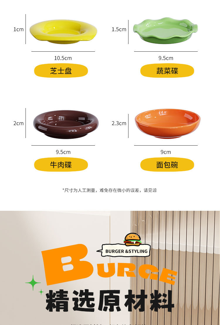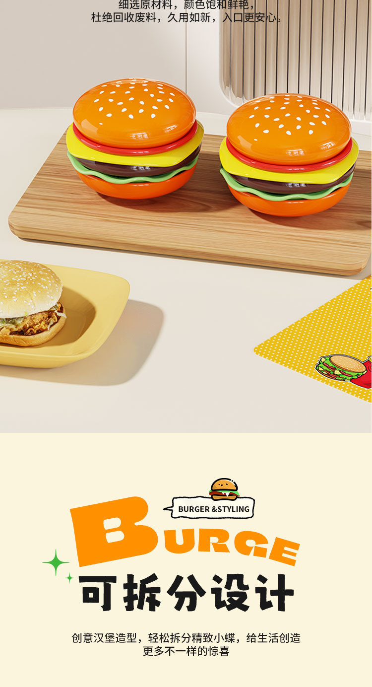 햄버거 그릇과 접시 세트, 귀여운 가정용 주방 샐러드 디저트 스낵 접시, 절묘한 어린이 그릇과 접시, 디핑 접시스토어 가기
