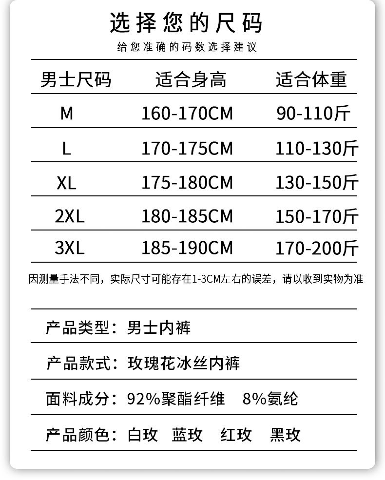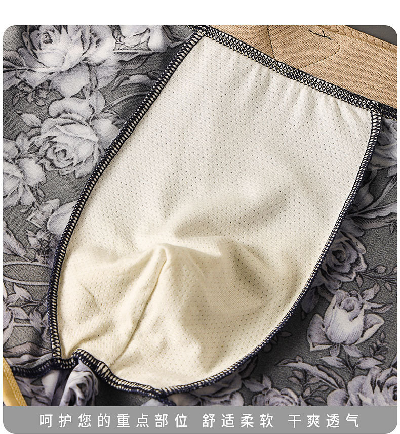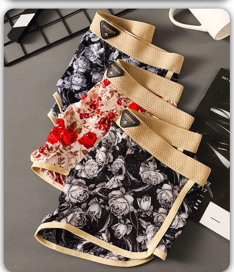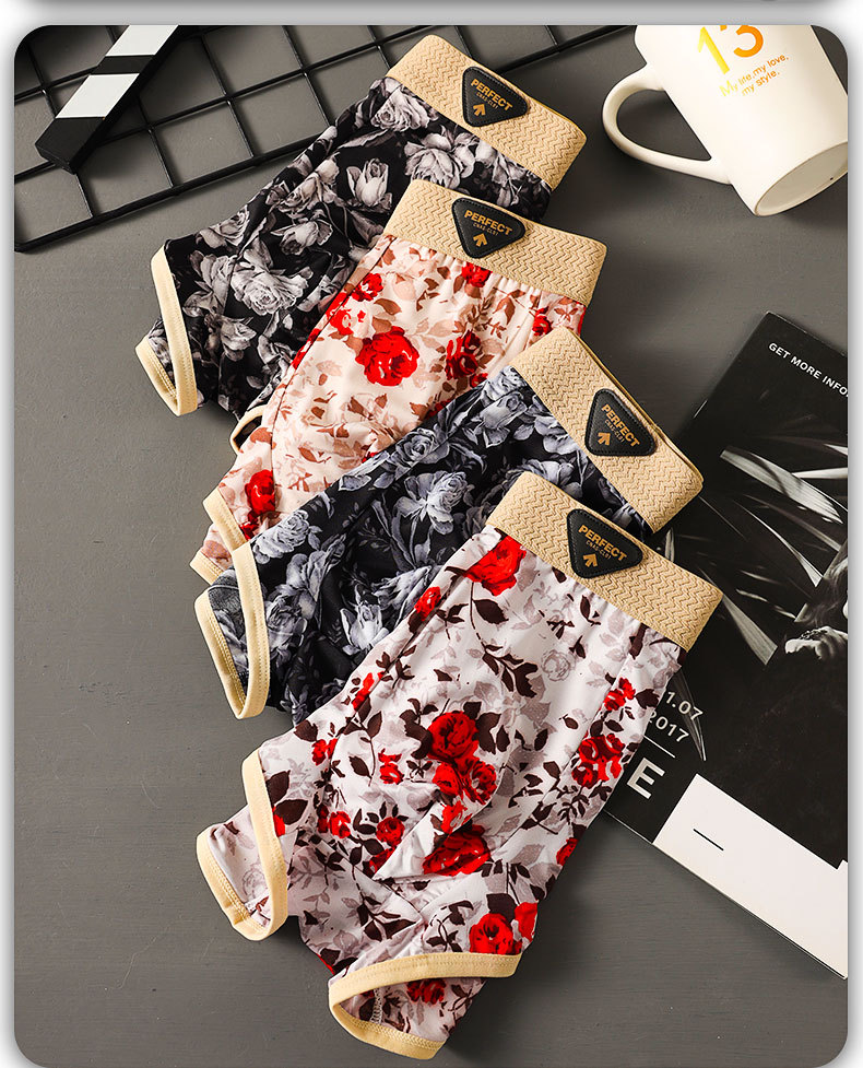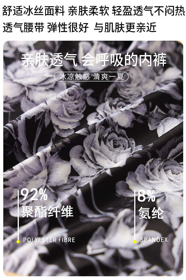 [싱글 팩] 여름 아이스 실크 남성 속옷 패셔너블한 로즈 프린트 맞춤형 부드러운 복서 팬티