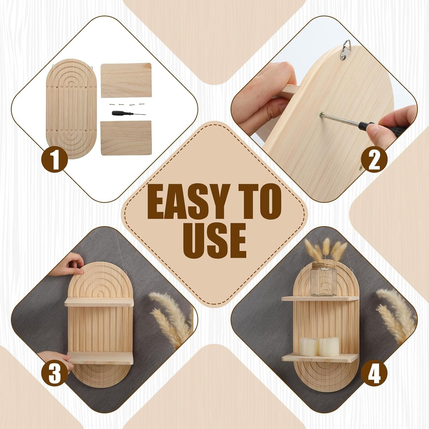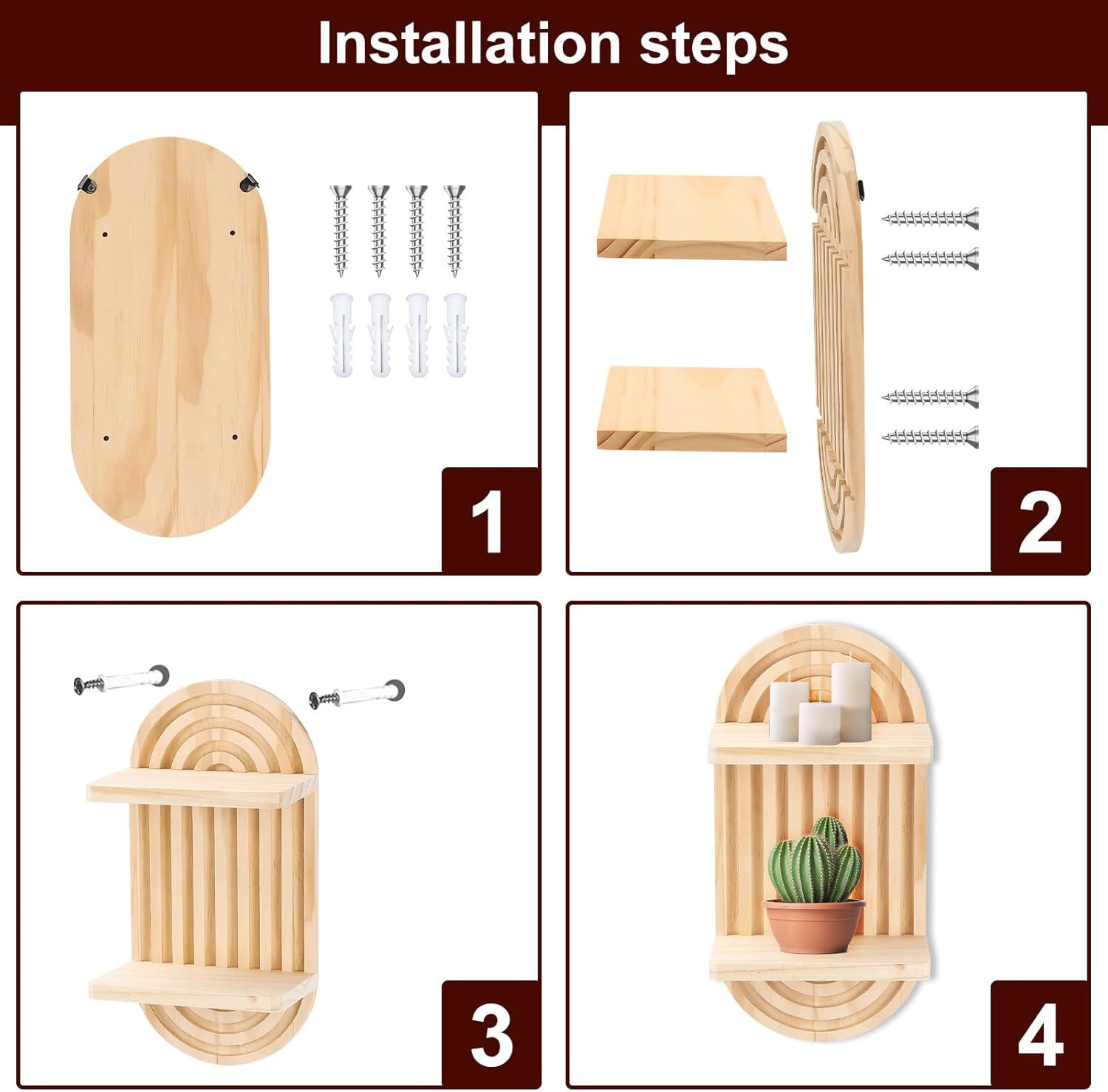 스팟 벽걸이형 선반, 나무 벽걸이형 플레이트 꽃꽂이, 원목 벽 촛대 장식선반스토어 가기