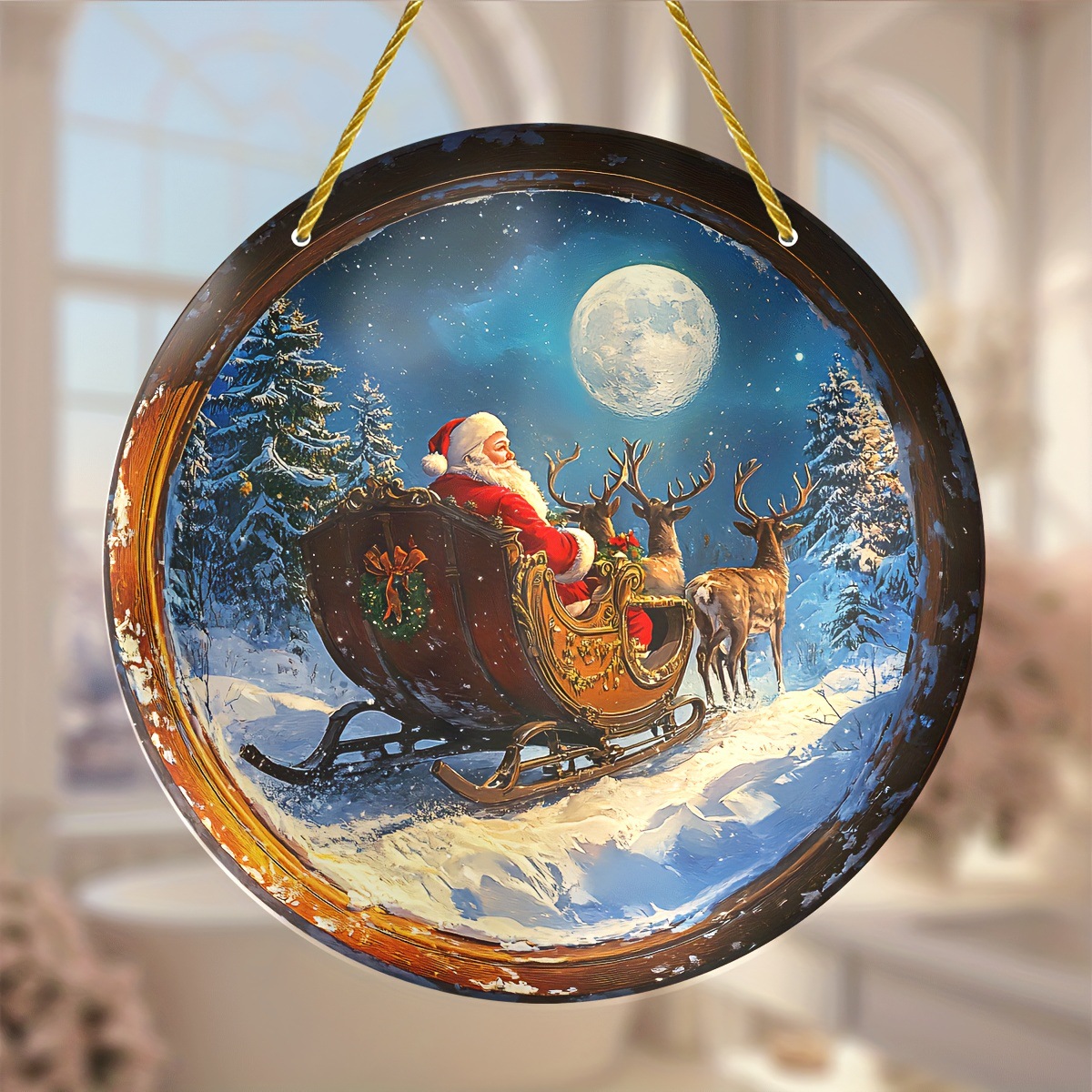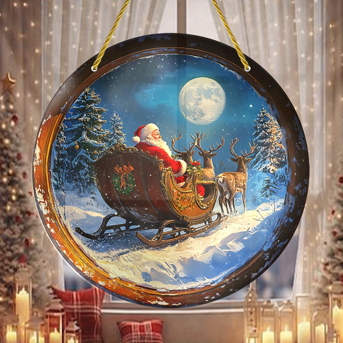 1개 휴일 산타 썰매 및 순록 아크릴 햇빛 포수(8"x8") - 생생한