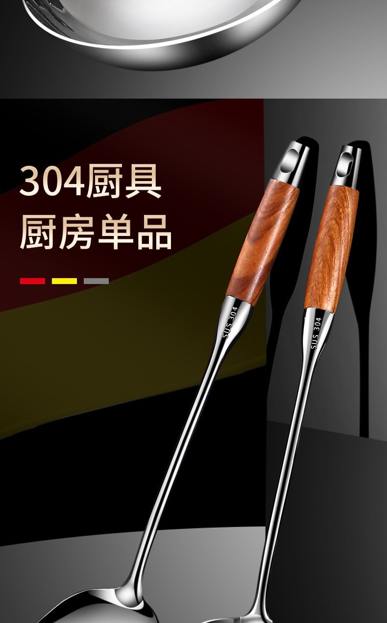 304 스테인레스 스틸 광택 로즈 우드 주걱 수프 스푼 조리기구 주걱 가정용 요리 주걱 주방 용품 세트스토어 가기