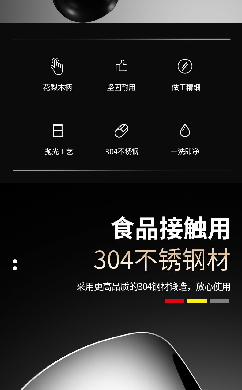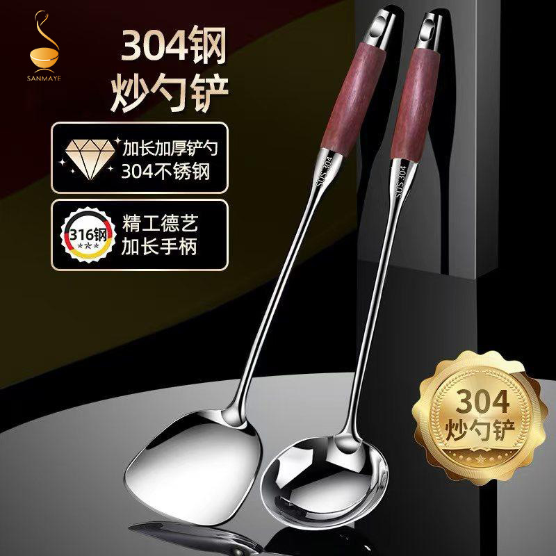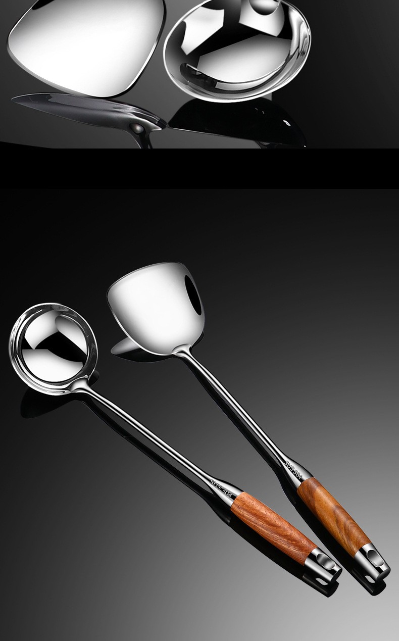 304 스테인레스 스틸 광택 로즈 우드 주걱 수프 스푼 조리기구 주걱 가정용 요리 주걱 주방 용품 세트