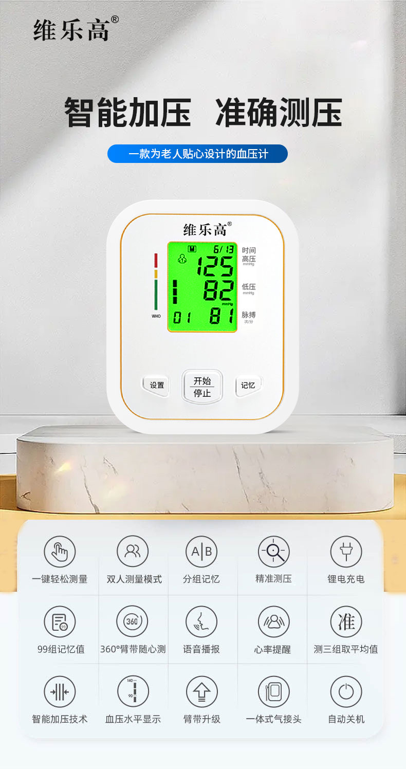 혈압 측정기 가정용 팔 전자 혈압계 완전 자동 새로운 의료 정확한 혈압 측정기스토어 가기
