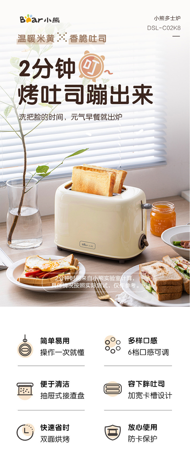 Xiaoxiong Toast Driver DSL-C02K8 토스터 다기능 토스터 가열 기계 샌드위치 기계에 적합스토어 가기