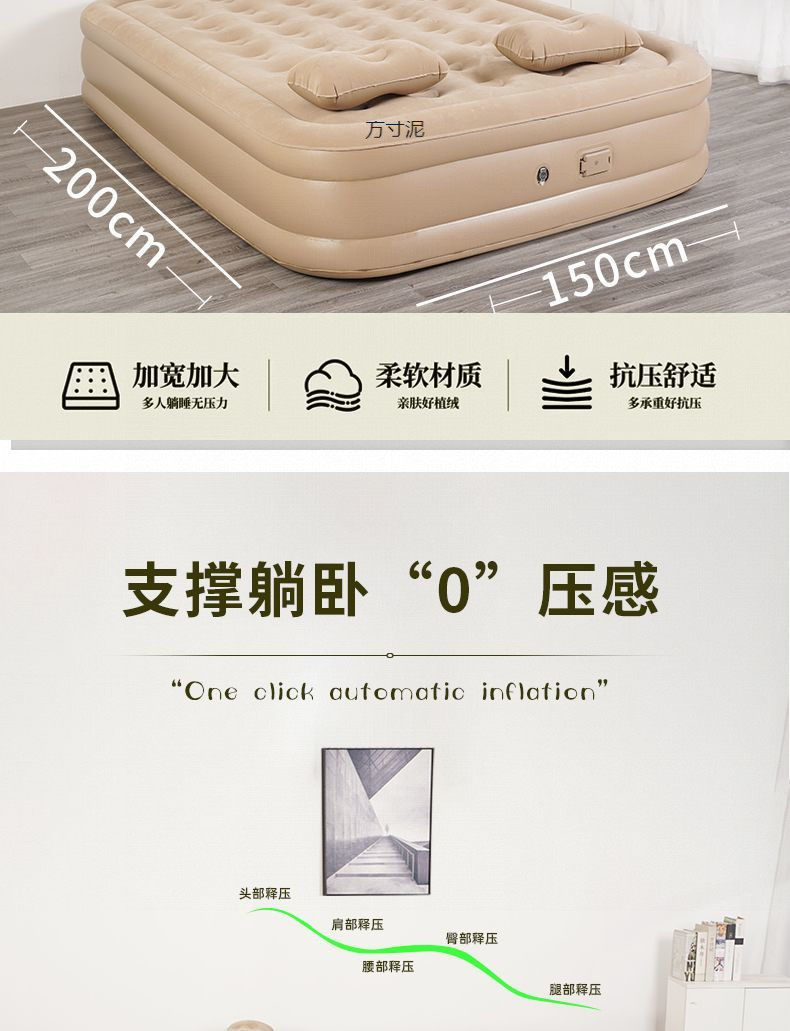 자동 풍선 침대 단일 휴대용 강화 홈 더블 야외 캠핑 바닥 침대 에어 침대 접이식 슈퍼 두꺼운 공장스토어 가기