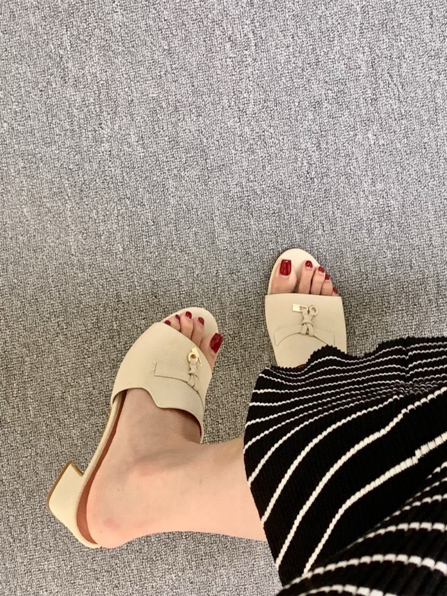 펜던트 두꺼운 굽 게으른 신발 2025 여름 신작 뮬 샌들 외부 오픈 토 LP 하프 슬립 하이힐 여성 신발 편안함스토어 가기