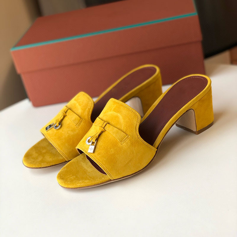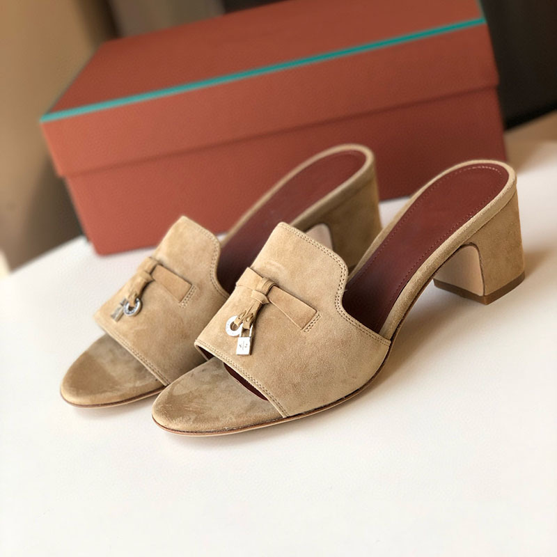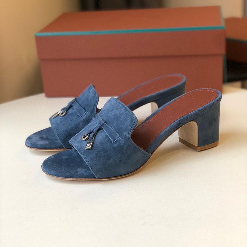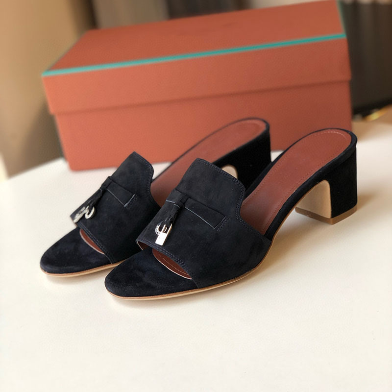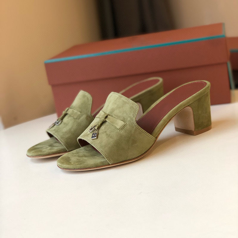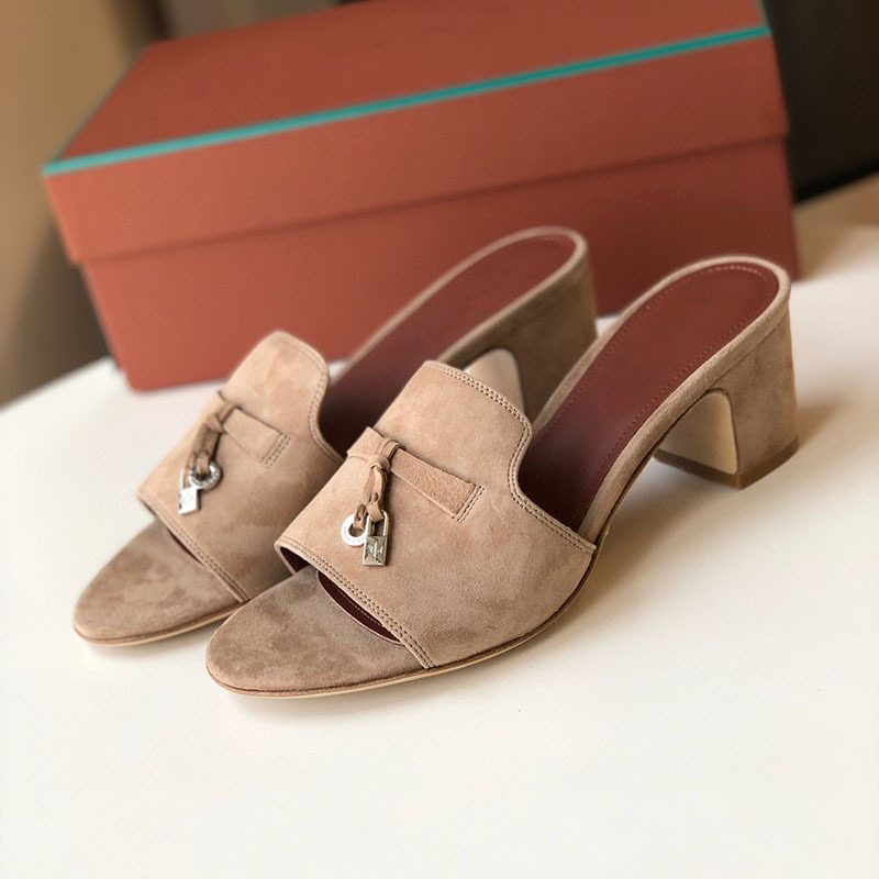 펜던트 두꺼운 굽 게으른 신발 2025 여름 신작 뮬 샌들 외부 오픈 토 LP 하프 슬립 하이힐 여성 신발 편안함