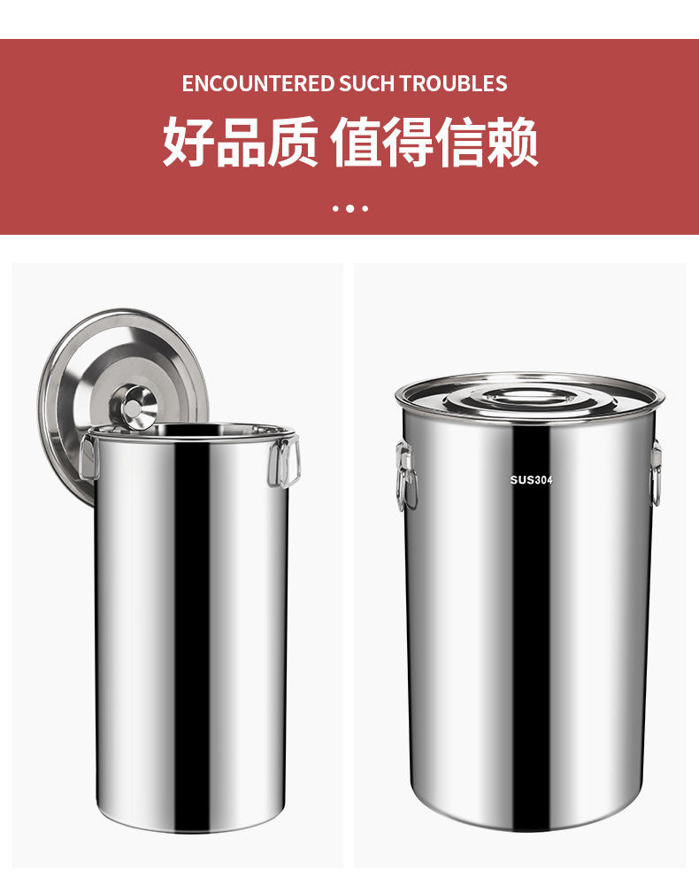 304 스테인레스 스틸 물 저장통, 뚜껑이 있는 상업용 수프 통, 대용량 두꺼운 대형 수프 냄비, 양이 높은 원형 통, 오일 통스토어 가기