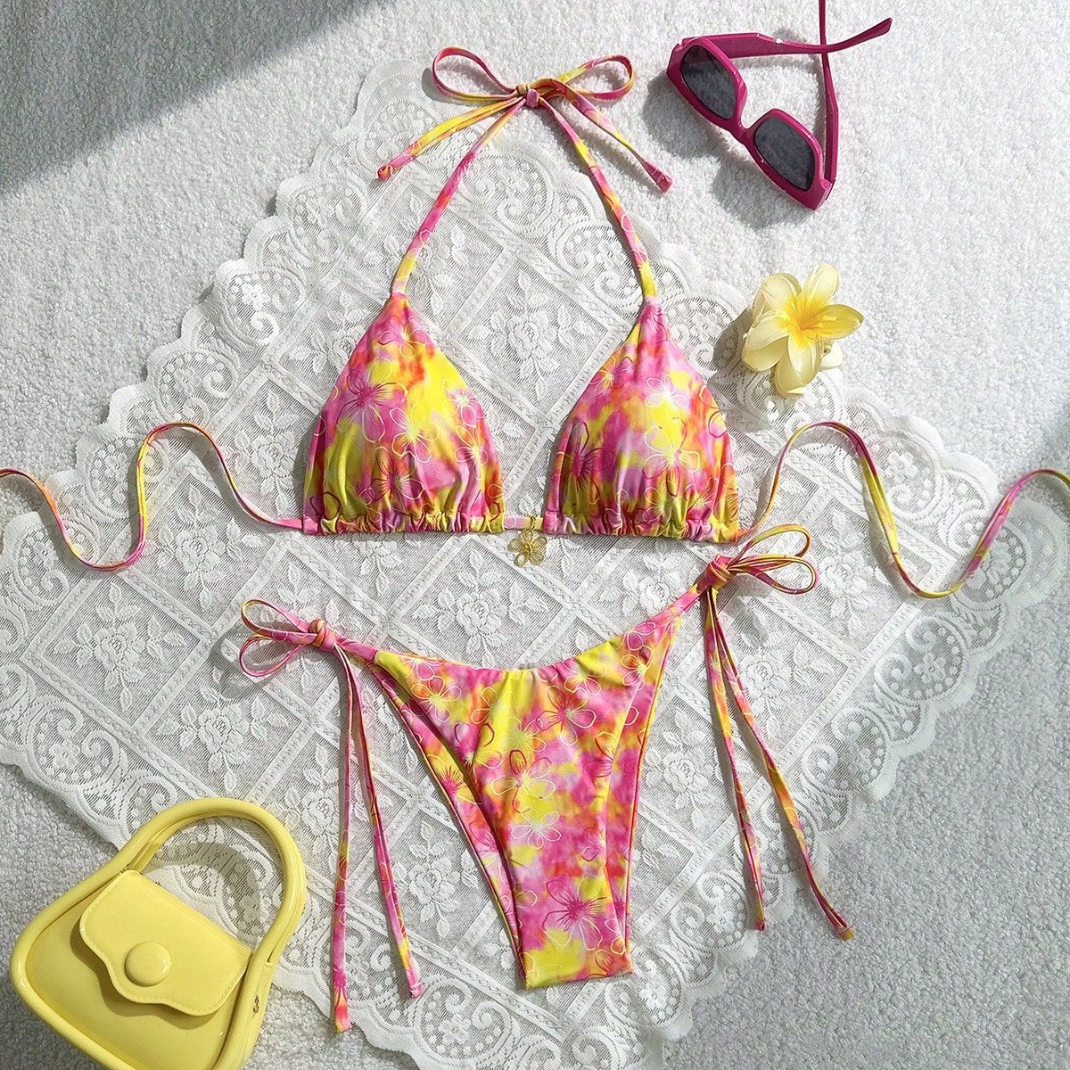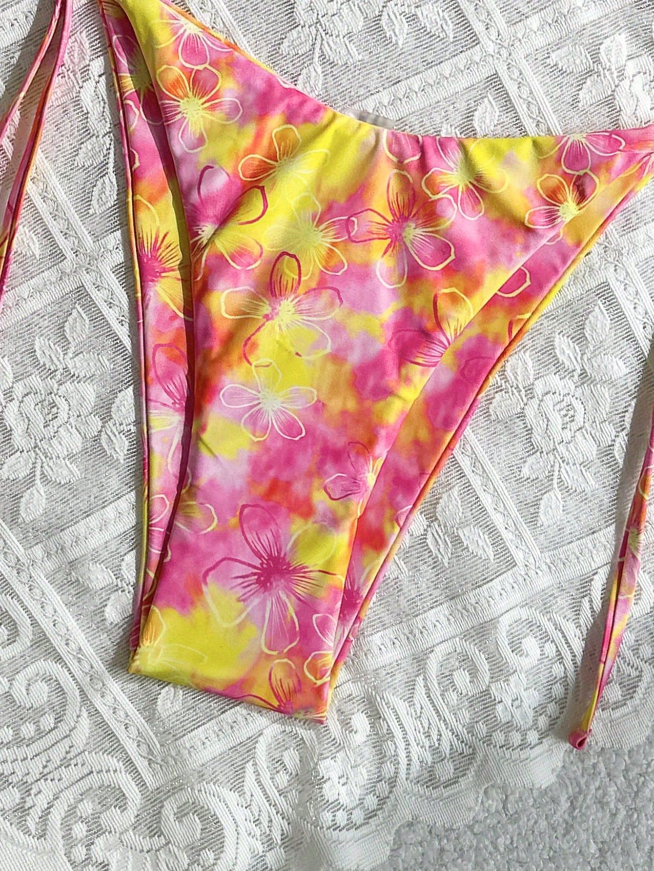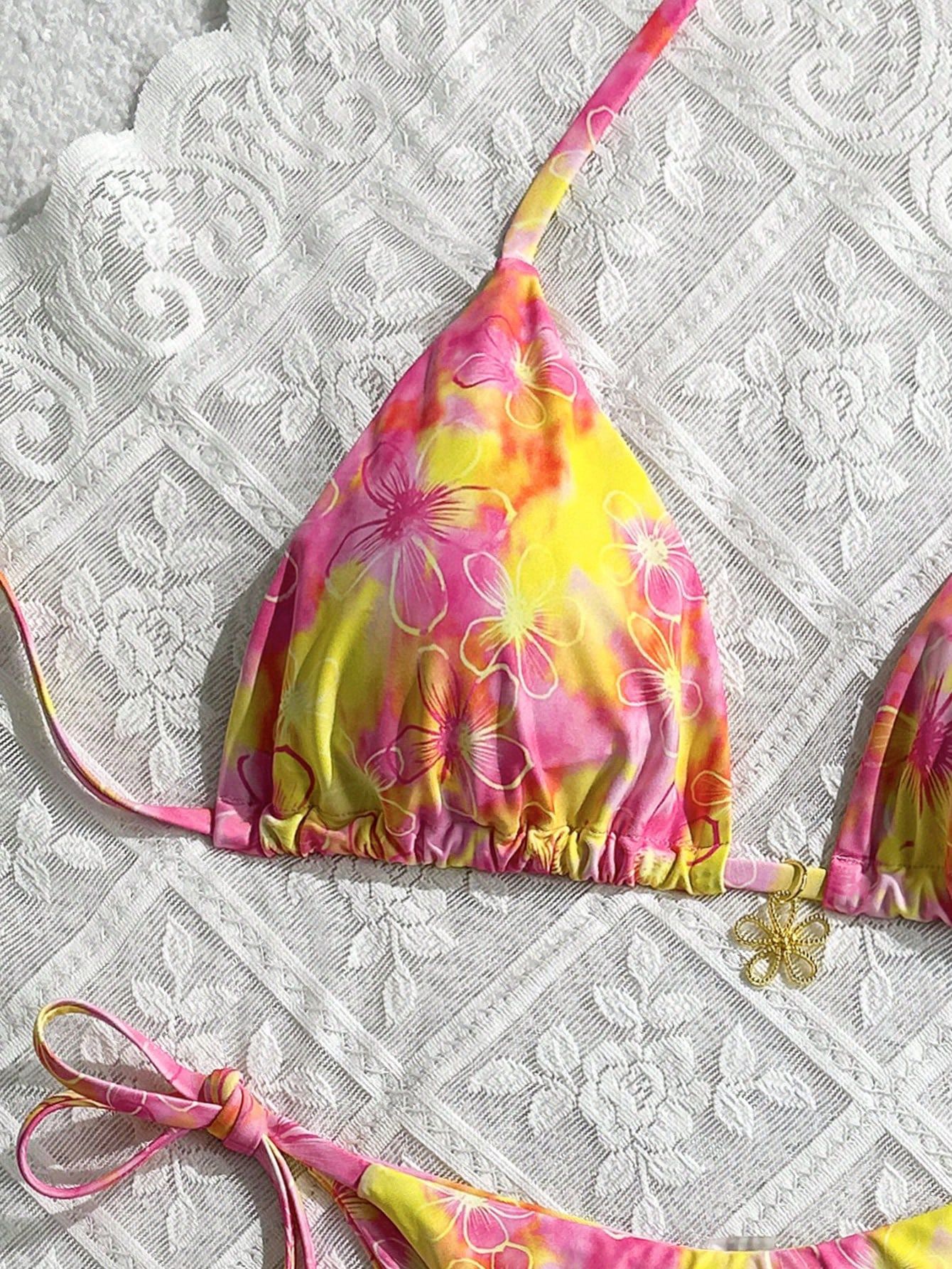 2025 수영복 새로운 꽃 프린트 비키니 유럽과 미국의 섹시한 레이스 업 비키니 여성의 작은 신선한 스플릿 수영복스토어 가기