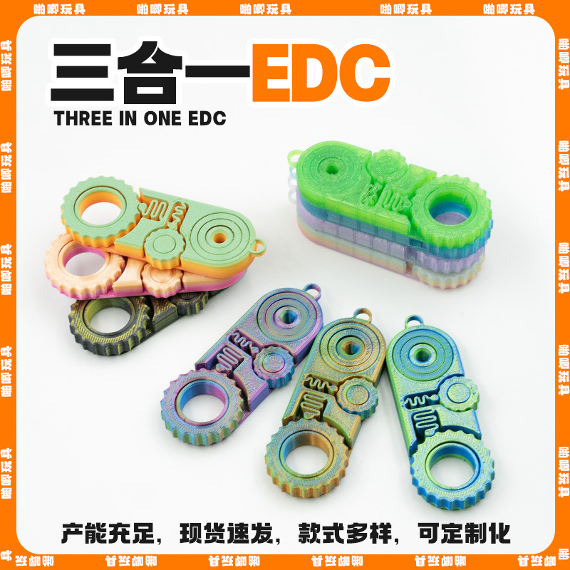 3D 프린팅 3-in-1 스트레스 해소 장난감 키링, 어린이 교육용 손가락 회전 기어, 불안 해소 및 스트레스 해소 도구
