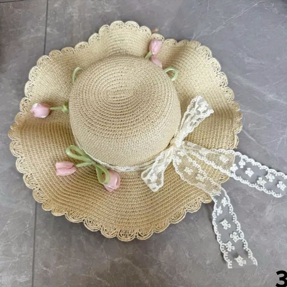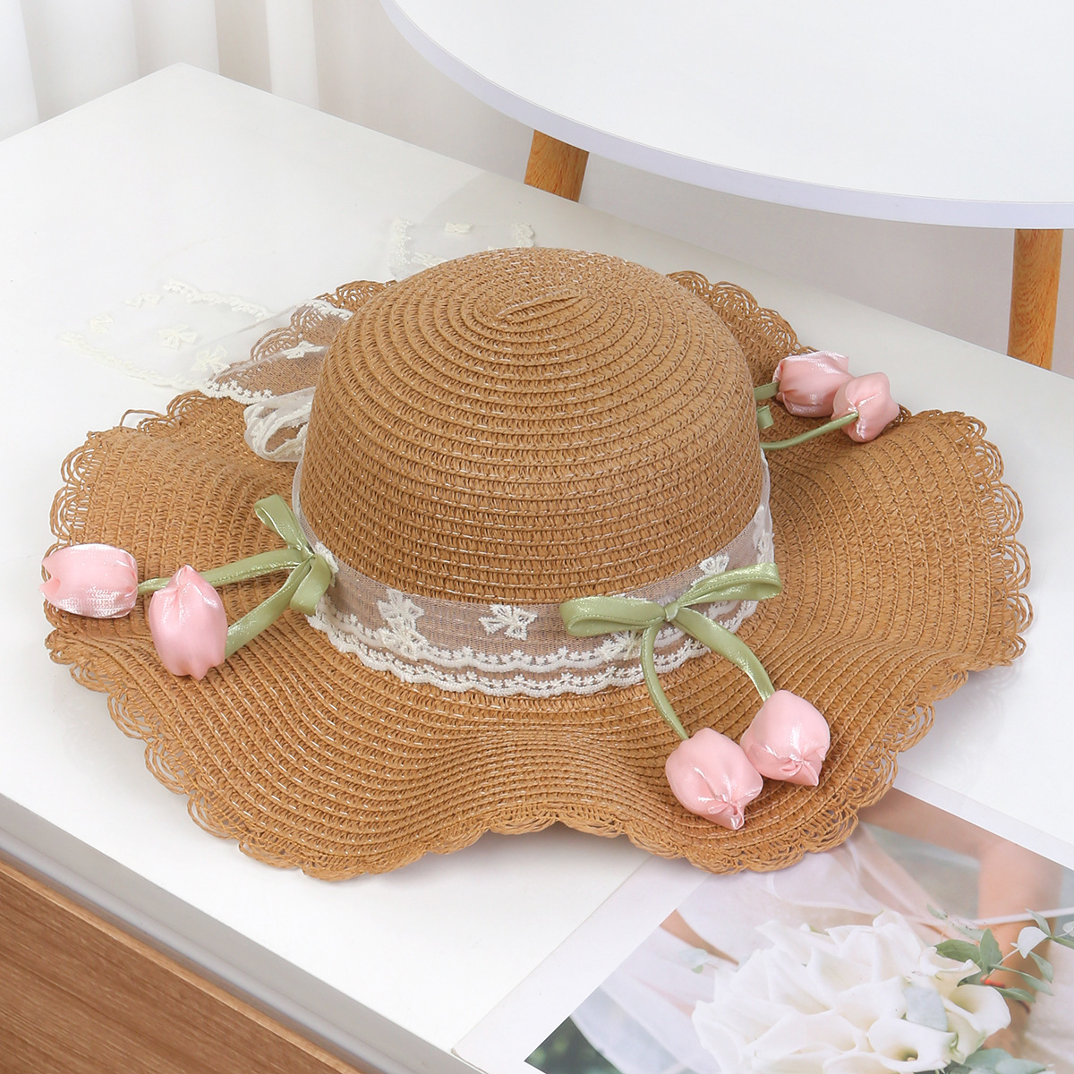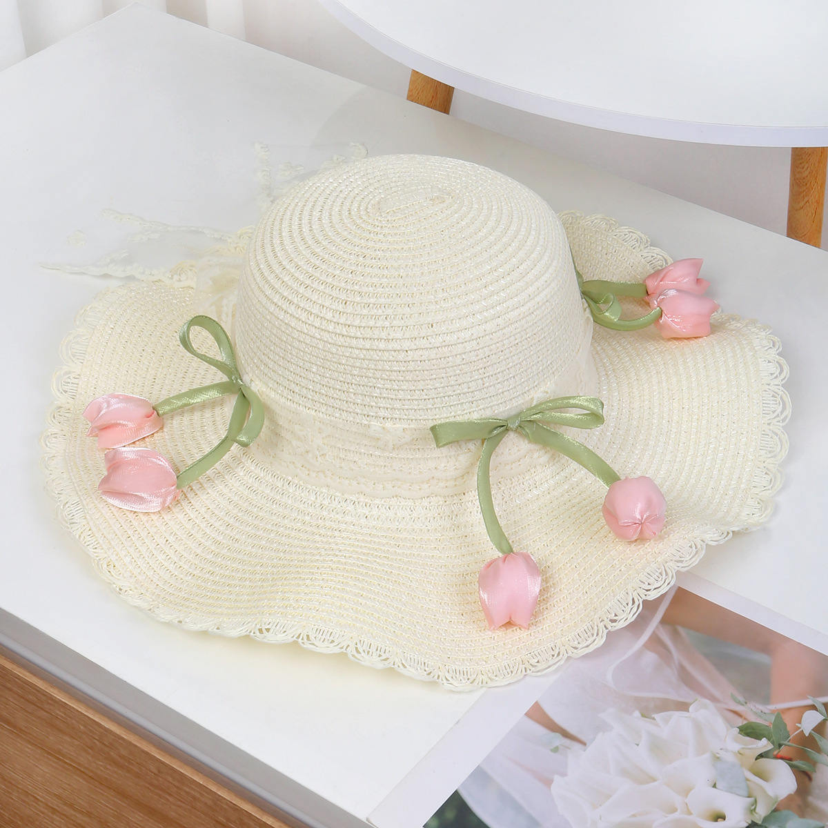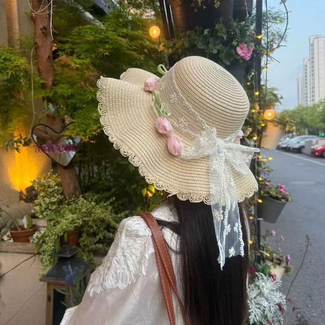 해변 해변 모자 태양 보호 활 태양 모자 레이스 밀짚 모자 여름 태양 모자 꽃 튤립 태양 보호