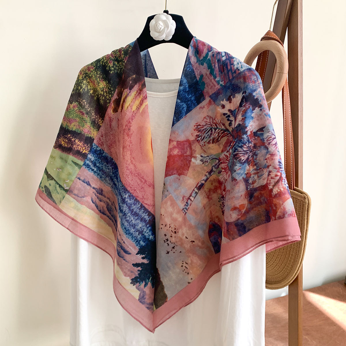 봄 여름 새로운 스타일의 중국 스타일 꽃잎 실크 스카프 여성 패션 다재다능한 고급 외부 숄 여성 얇은 대형 사각형 스카프스토어 가기