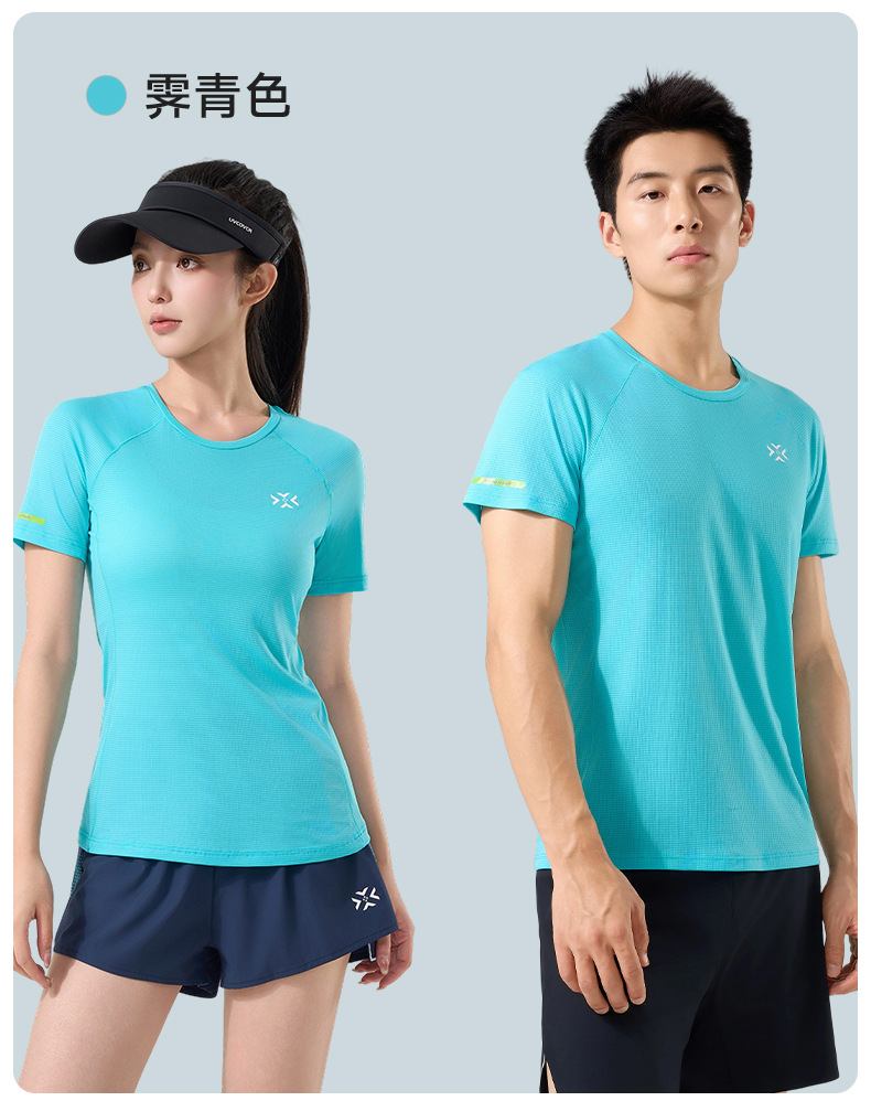 Youweizhe 남성용 및 여성용 브리딩 체크 무늬 라운드 넥 속건성 반팔 경량 땀 흡수 티셔츠 통기성 러닝웨어 다이나믹 스타일