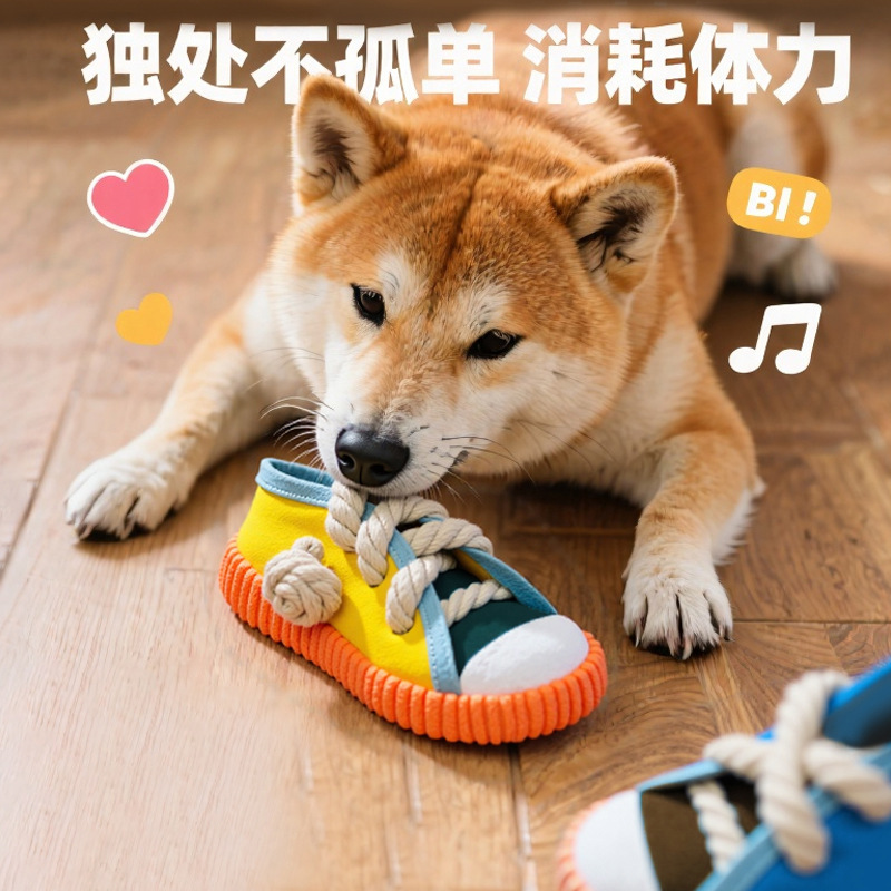 국경 간 애완 동물 장난감 씹는 슬리퍼 개 BB 짖는 장난감 어금니 신발 애완 동물 면 로프 어금니 물림 방지 장난감스토어 가기