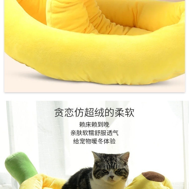고양이 개집, 바나나 개집, 탈부착 및 세탁 가능, 사계절 보편적, 따뜻하고 두꺼운, 중소형 개 코기 시바 개집 바나나스토어 가기