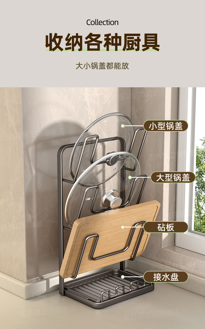 제조업체는 주방 냄비 뚜껑 랙, 주걱 홀더, 도마, 다기능 가정용 조리대 보관 및 배치 랙을 공급합니다.