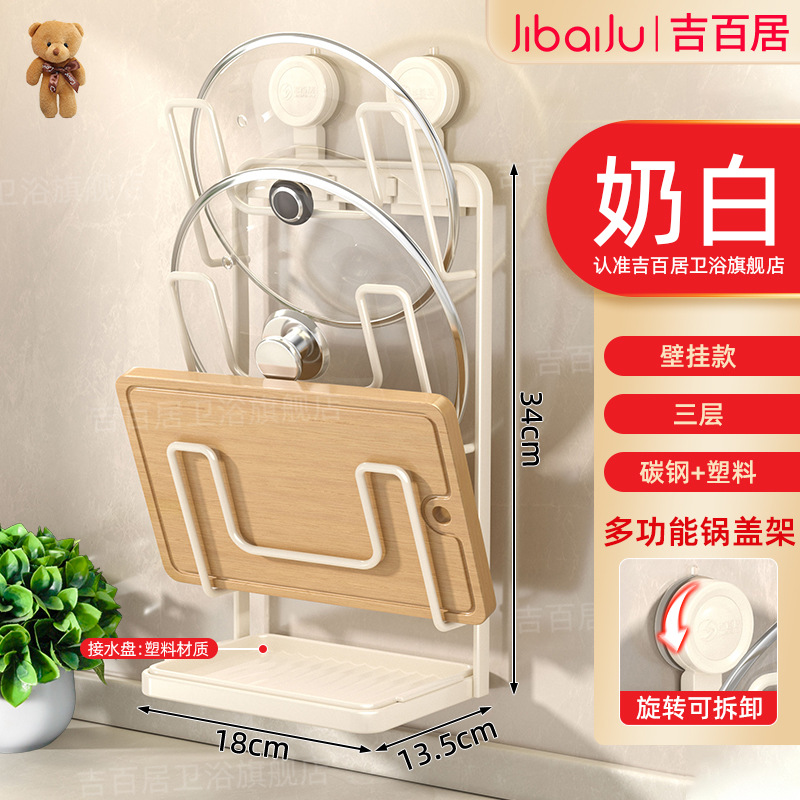 • 흡착컵 모델 - 유백색 3단 냄비 뚜껑 홀더