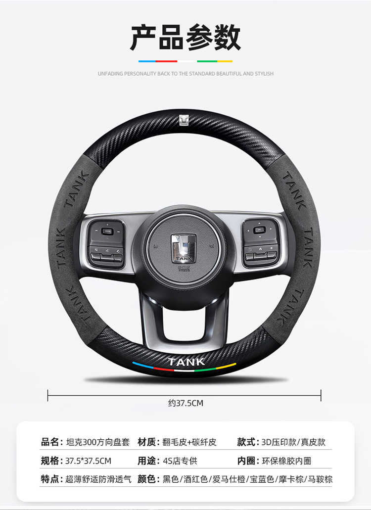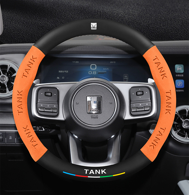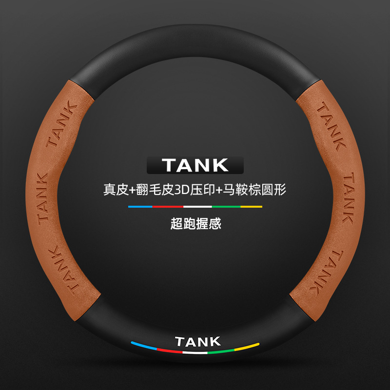 탱크700/500/400/300용 스티어링 휠 커버 나파 가죽 미끄럼 방지 핸들 커버 손바느질 필요 없음 사계절용스토어 가기