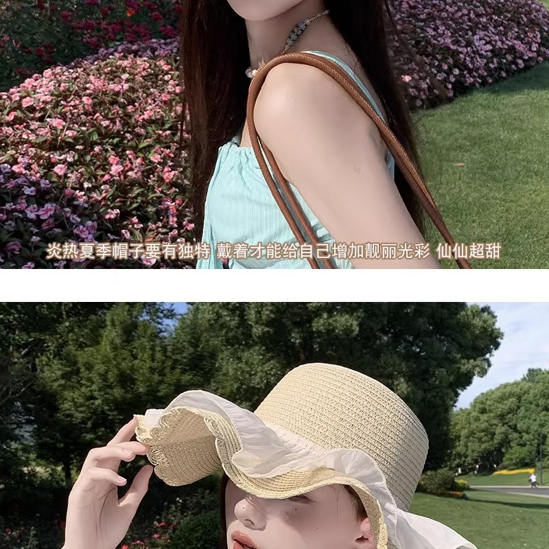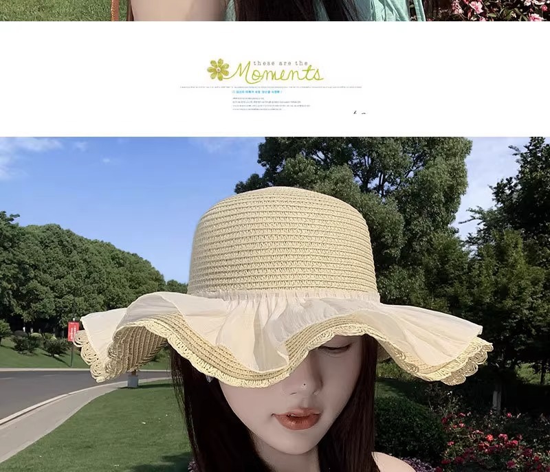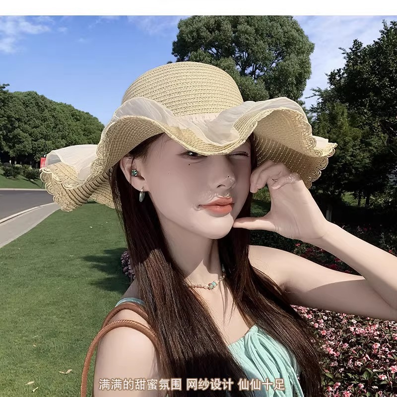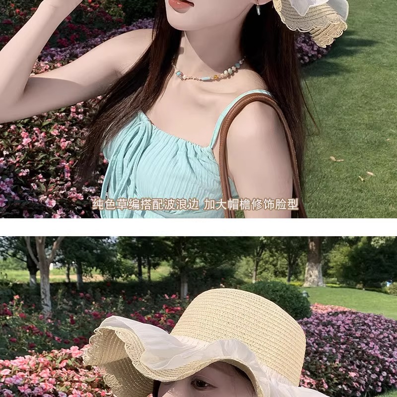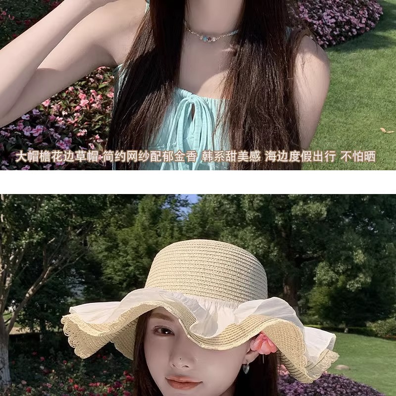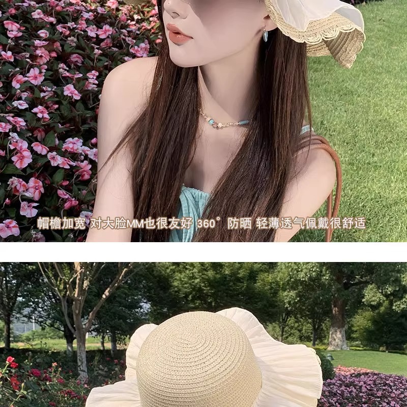 여성을위한 튤립 레이스 밀짚 모자 여름 해변 휴가 스타일 태양 보호 모자 큰 챙 태양 모자스토어 가기