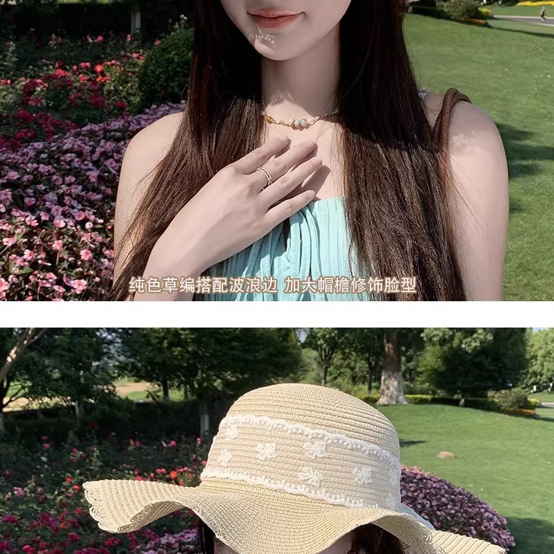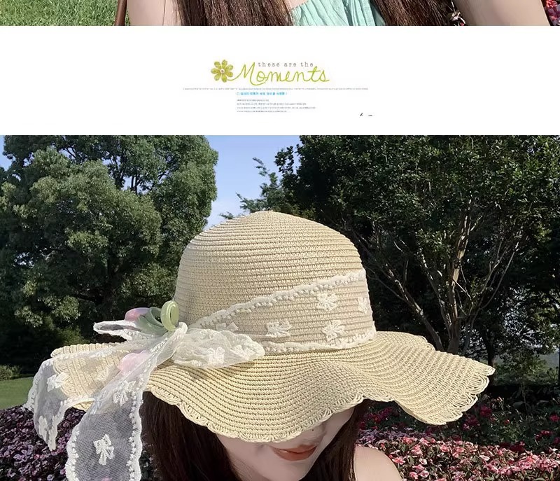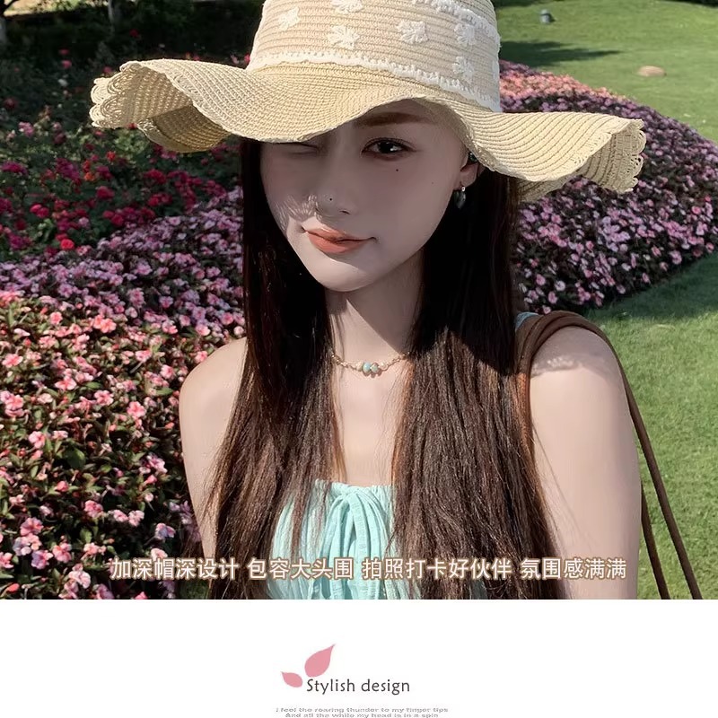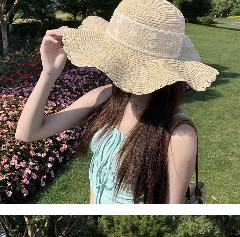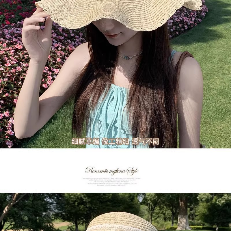 2025 새로운 대형 챙 밀짚 모자 여성 여름 태양 보호 모자 해변 태양 모자 해변 접이식 여행 한국어 버전스토어 가기