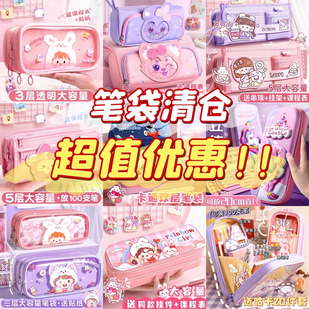 초등학생 연필 가방 소녀 만화 문구 상자 대용량 귀여운 연필 상자 유치원 소녀 연필 상자 문구 가방스토어 가기
