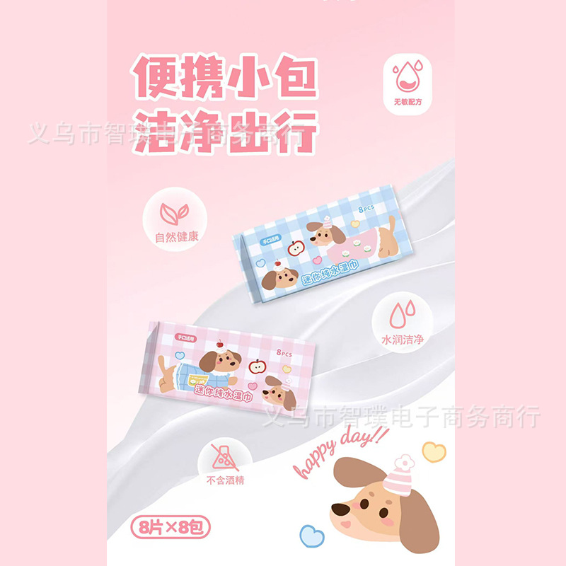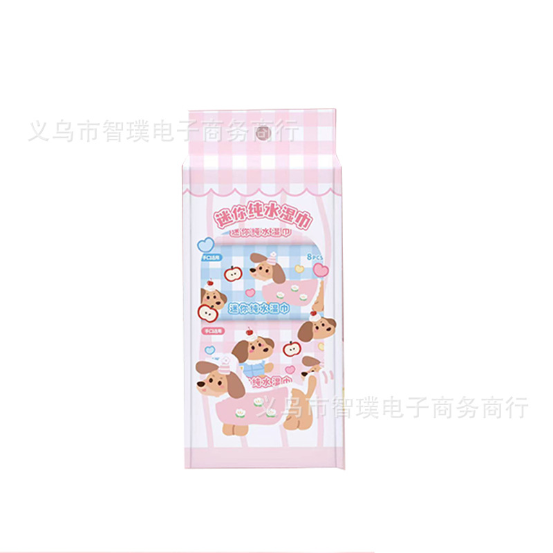 소시지 강아지를 위한 물티슈 8팩, 두껍고 휴대용 소형 물티슈, 만화 귀여운 미니 물티슈