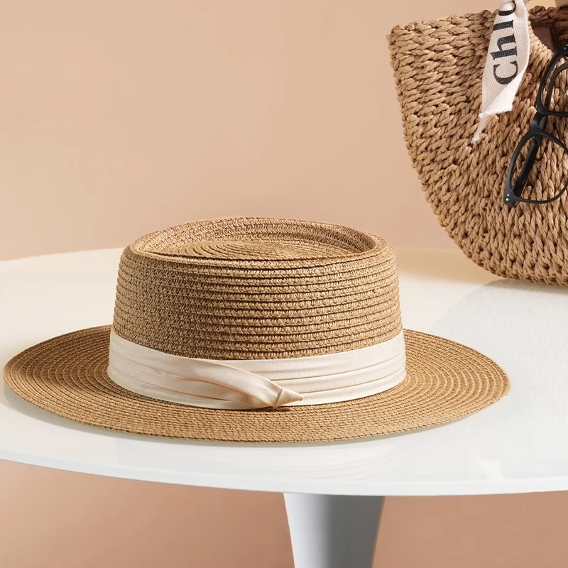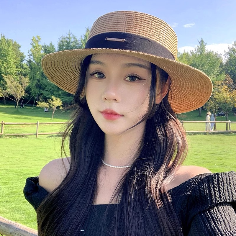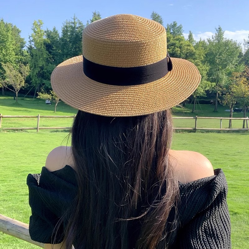 여성을위한 프랑스 밀짚 모자 2025 새로운 여름 태양 모자 해변 휴가 해변 모자 밀짚 태양 보호 플랫 모자스토어 가기