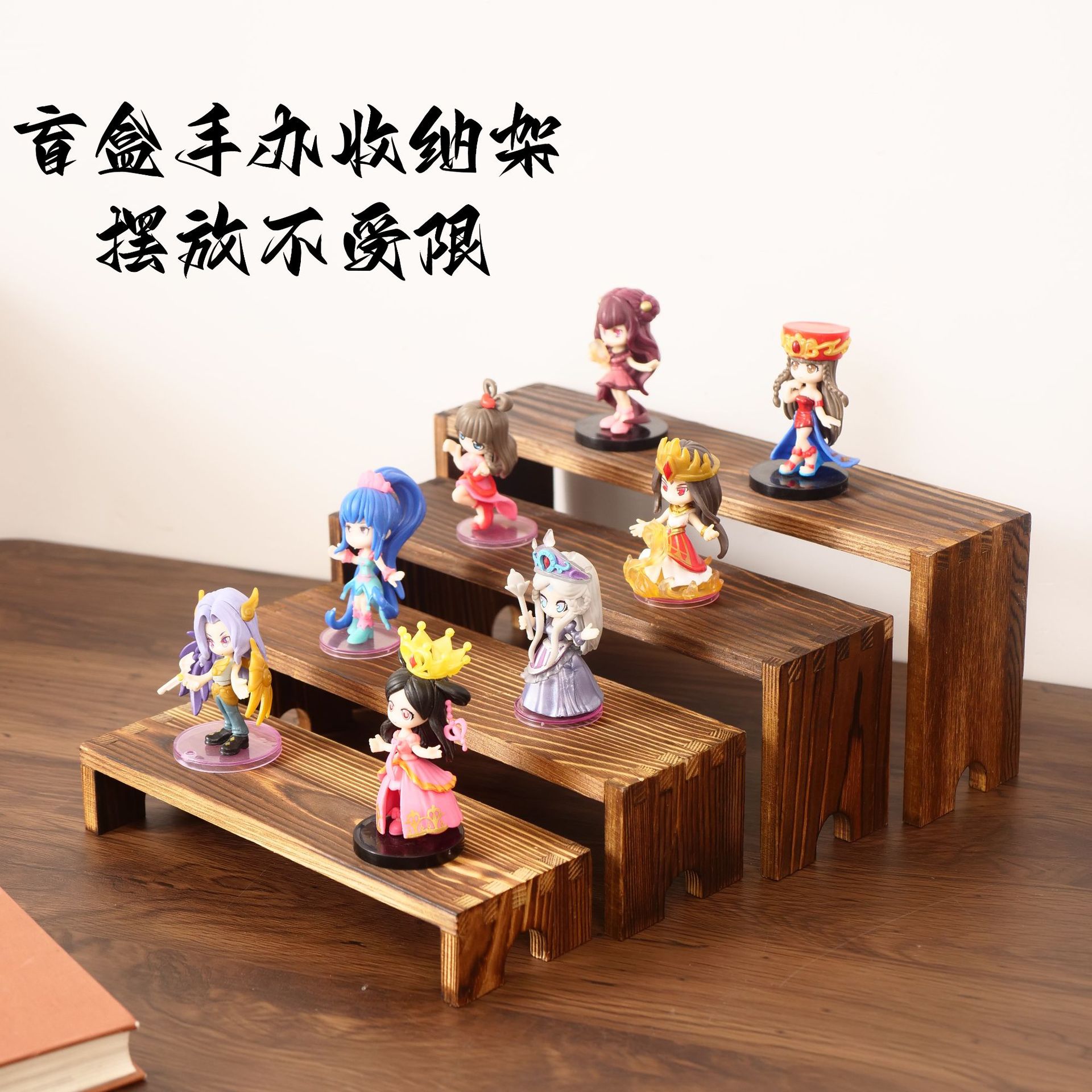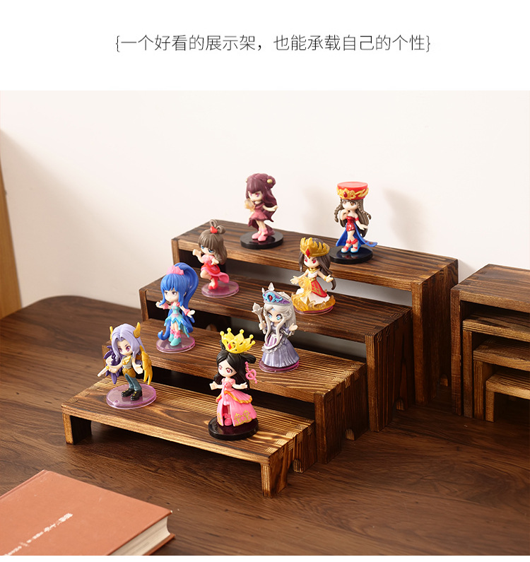 나무 수납 선반, 블라인드 박스, 사다리형 인형 장식품 수납 선반, 나무 판자 조합 향수 디스플레이 선반스토어 가기