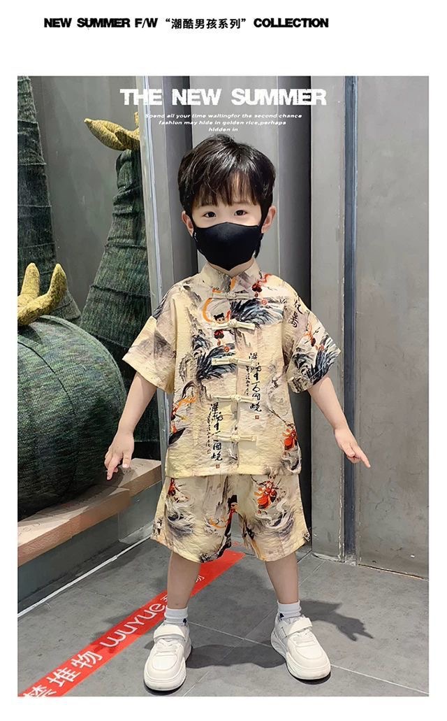 Nezha Clothes 2025 새로운 여름 어린이 정장 소년 Hanfu 여름 정장 중국 셔츠 반바지 투피스 세트