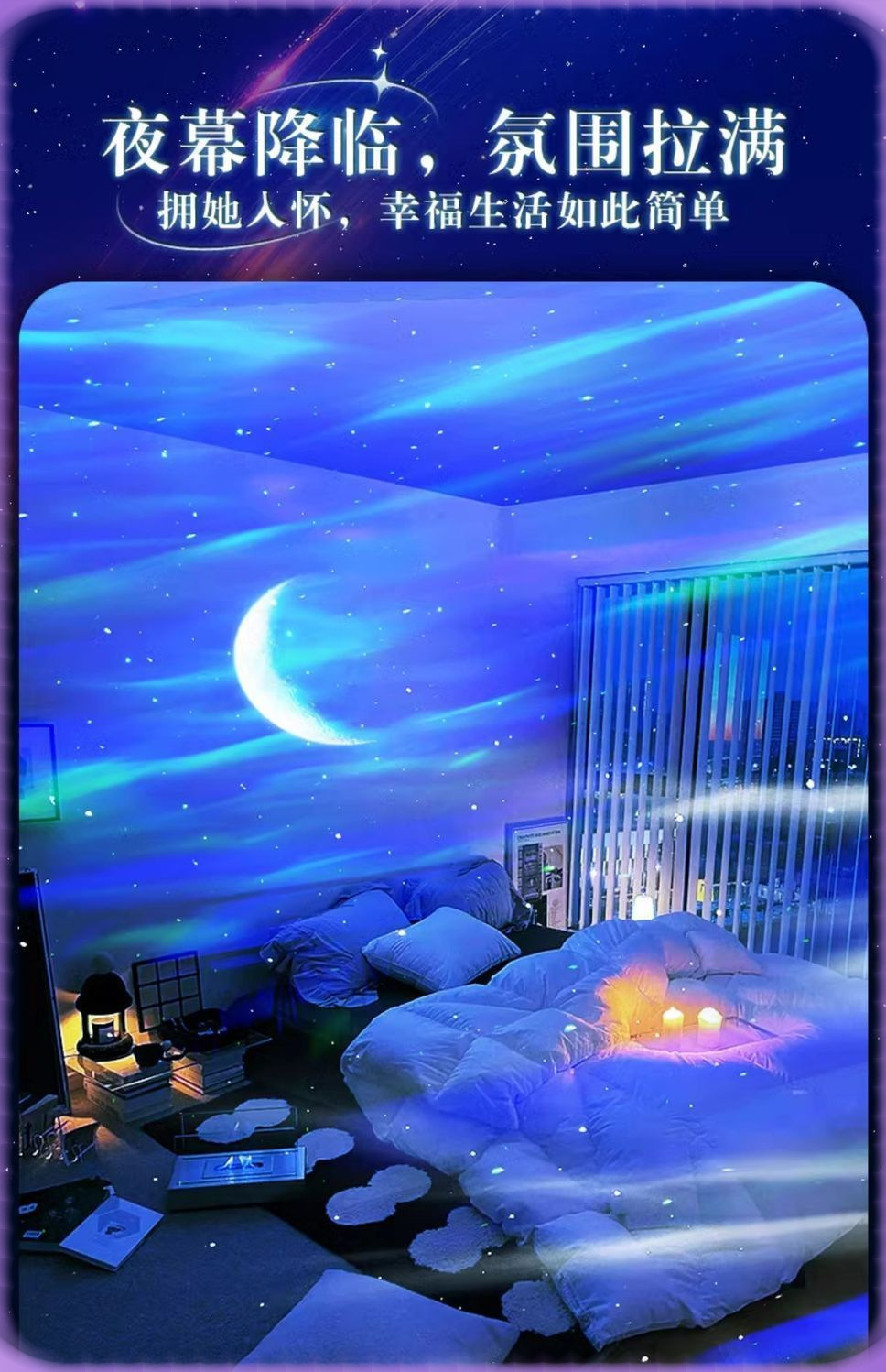 오로라 별이 빛나는 하늘 프로젝션 램프 레이저 별이 빛나는 하늘 조명 충전식 야간 조명 라이브 방송 룸 블루투스 오디오 분위기 조명