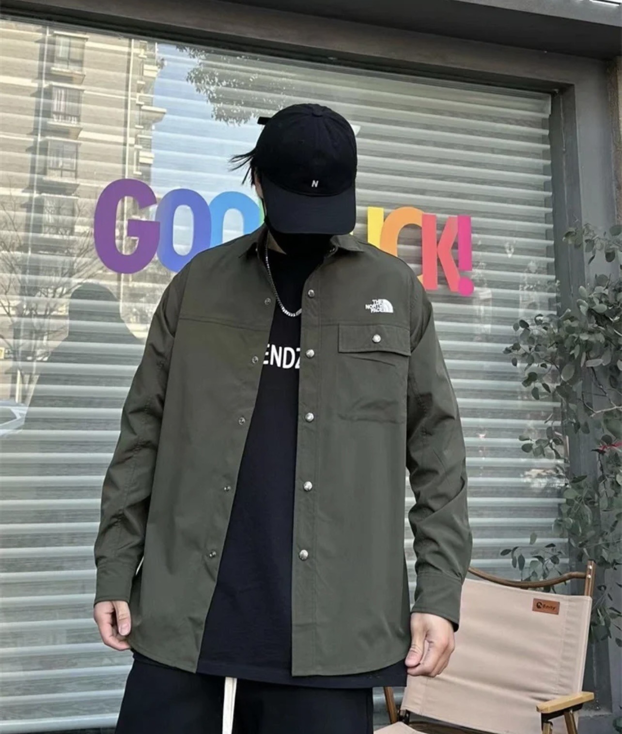 국경 간 도매 TNF 재킷 봄, 가을 셔츠 긴팔 컬러 블록 남성용 방수 및 경량 노스 페이스 카디건 자수