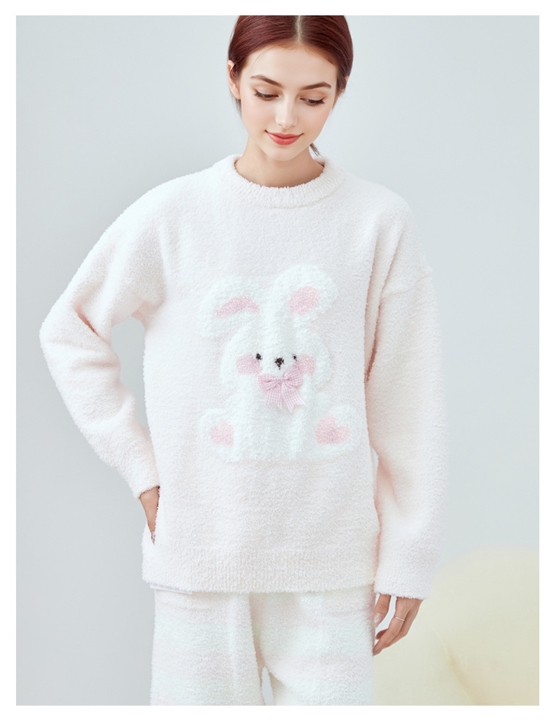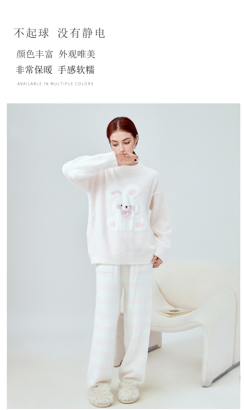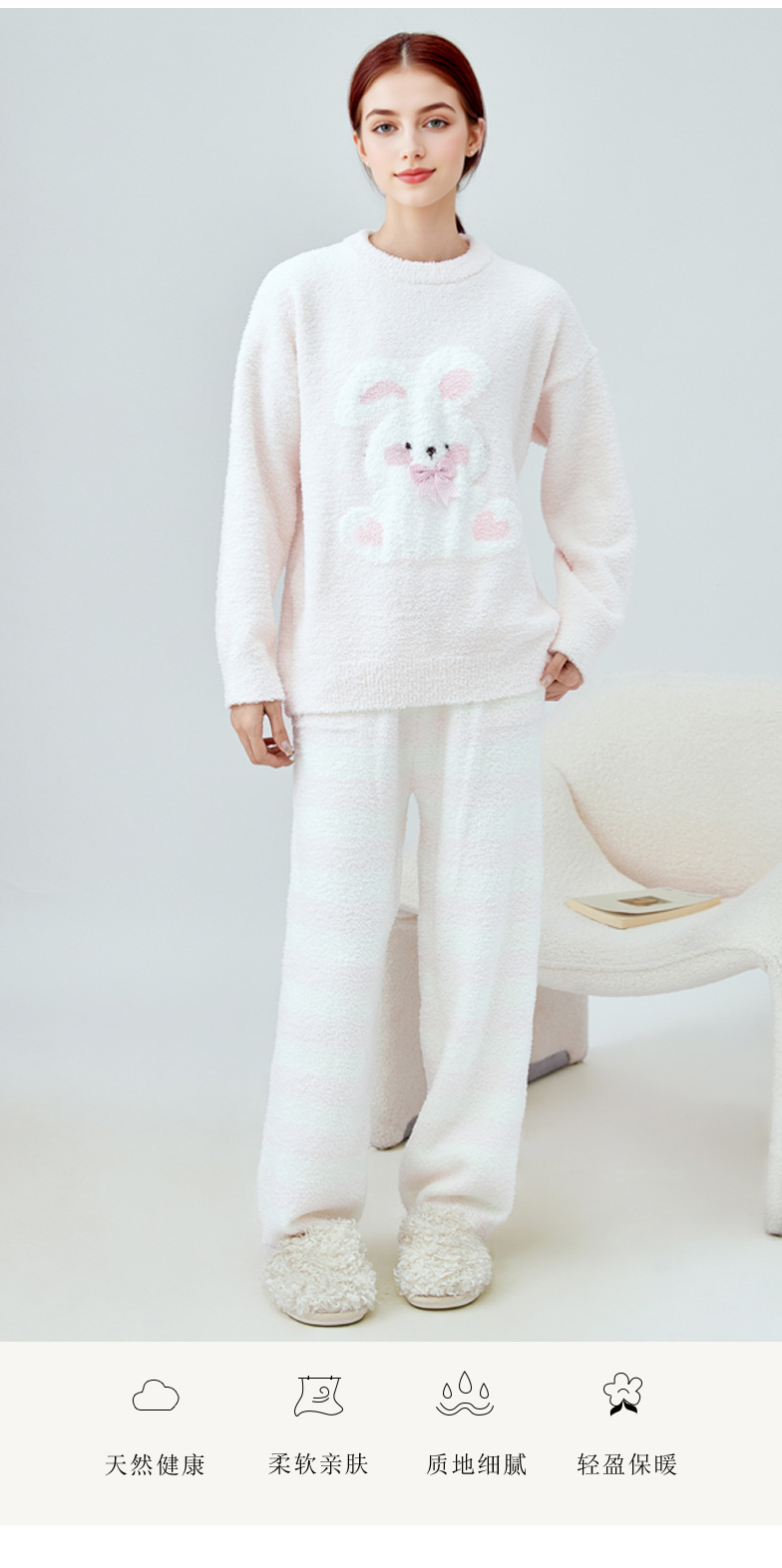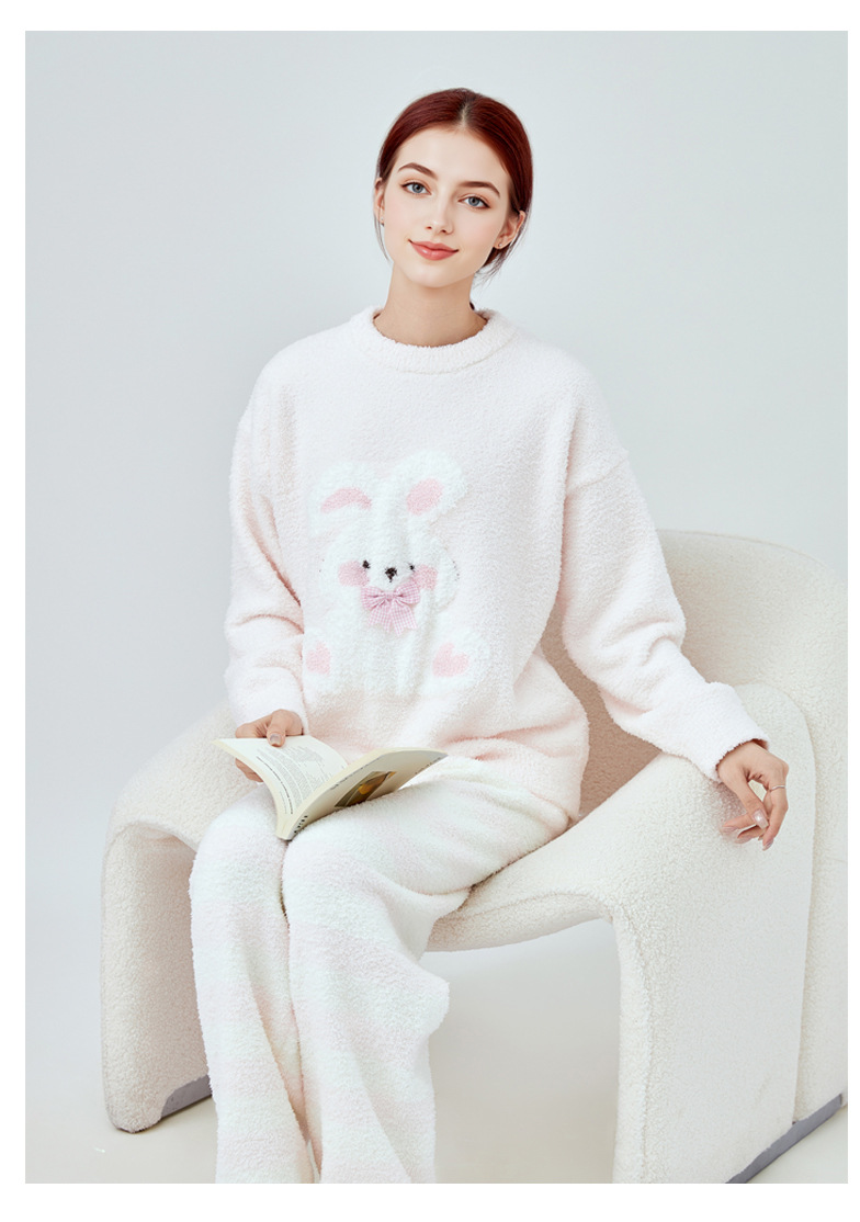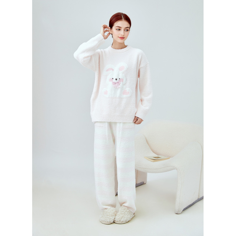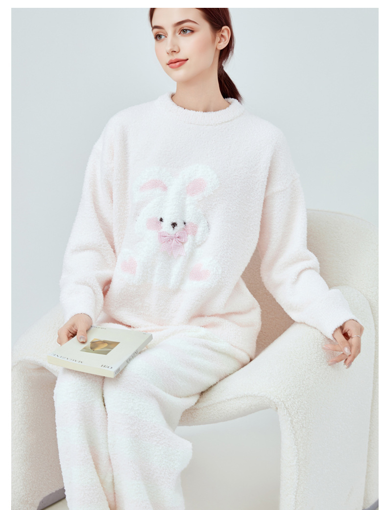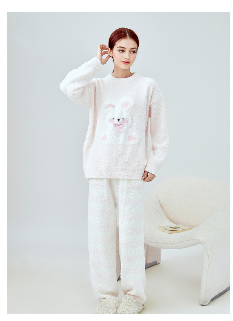 새로운 겨울 하프 벨벳 일본 줄무늬 여성 정장 잠옷 긴 소매 바지 편안한 캐주얼 홈웨어