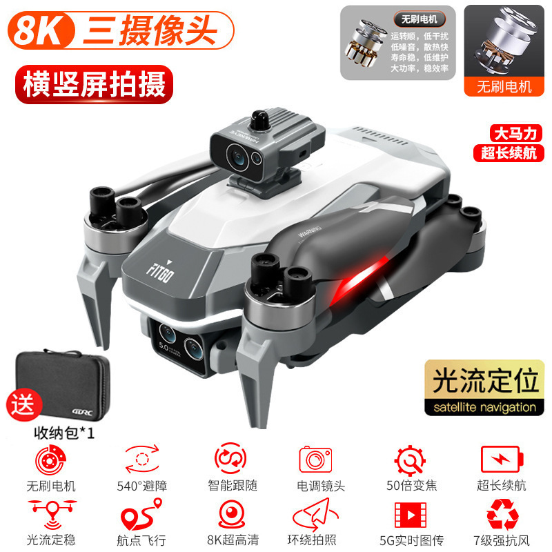 • 강력한 바람 저항 [브러시리스 모터 프로페셔널 버전] - EIS 손떨림 방지/전자 제어 8K 트리플 카메라 [540°