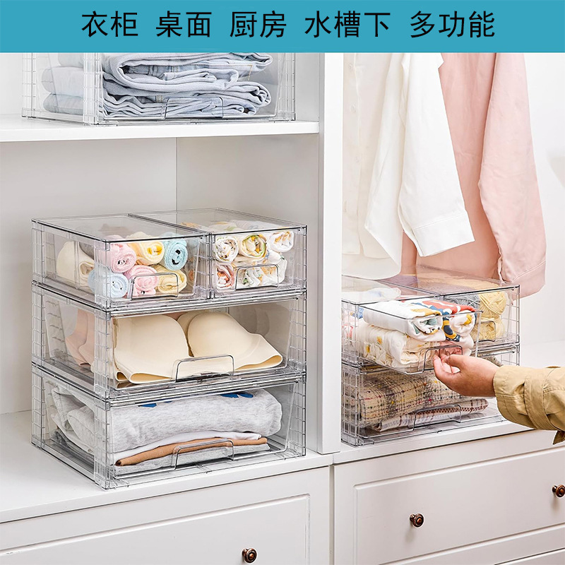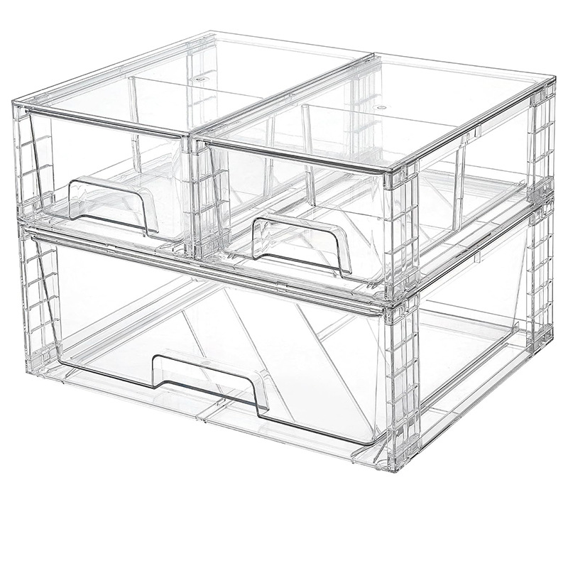 국경 간 인기 모델 1개의 넓은 서랍과 2개의 작은 서랍 보관 상자 쌓을 수 있는 탈착식 옷장 데스크탑 주방 정리 및 보관 랙스토어 가기