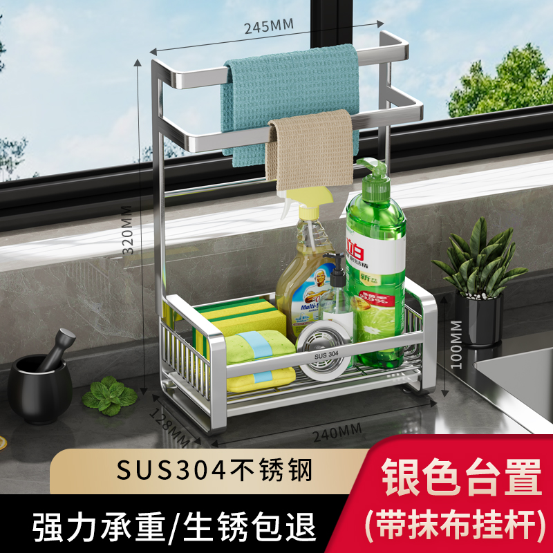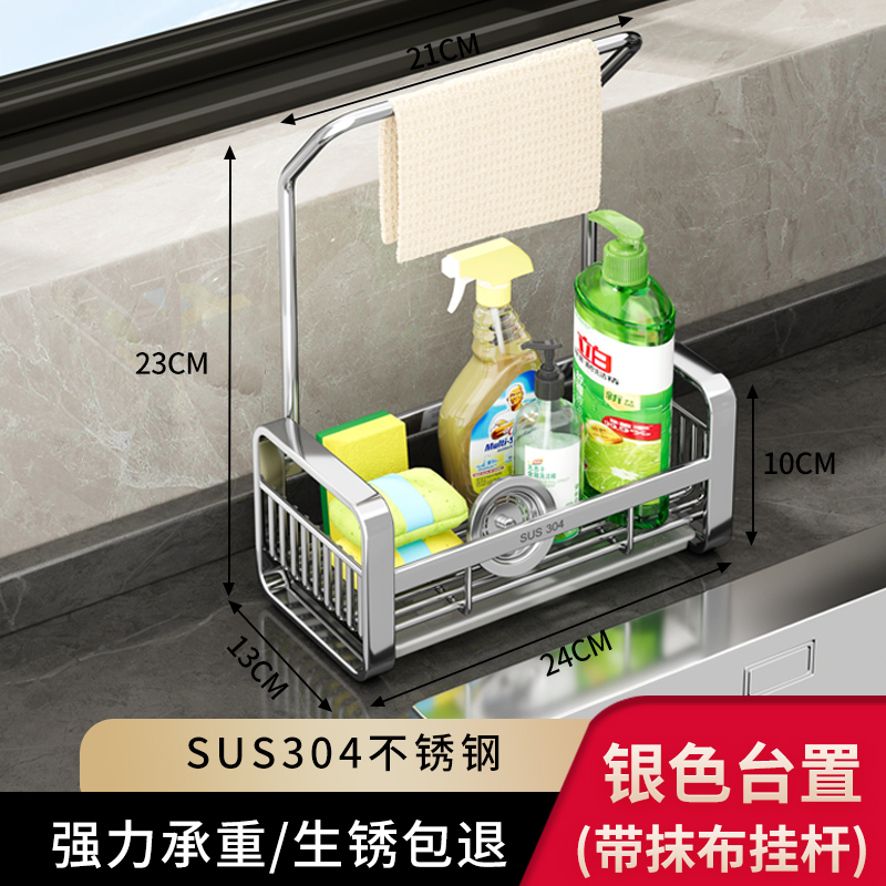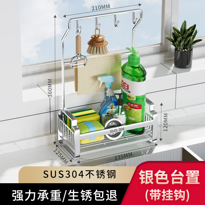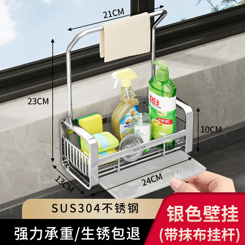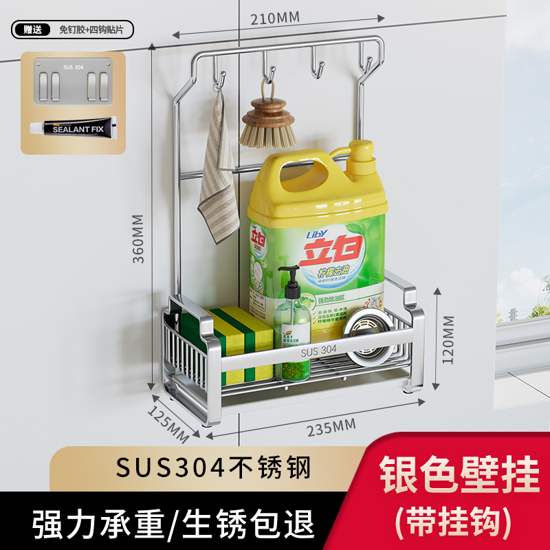 • [고리 4개 포함] 브라이트 실버 [벽걸이/조리대 겸용] + 탈착식 플라스틱 물받이 [다기능형]